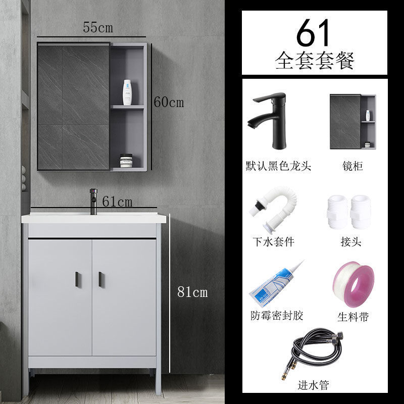 • 라이트 럭셔리 그레이-61*40 캐비닛 세면대 + 하드웨어 전체 세트 + 거울 캐비닛