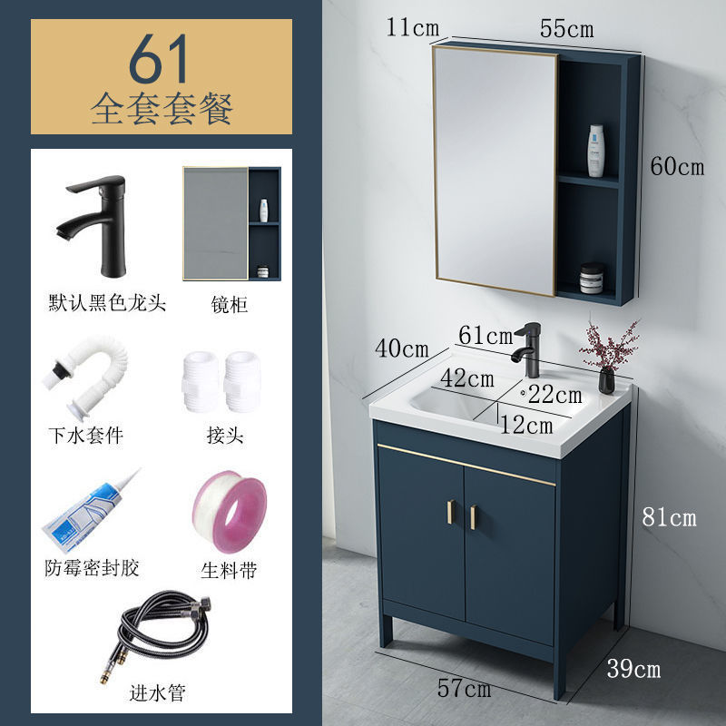 • Blue-61*40 캐비닛 세면대 + 하드웨어 전체 세트 + 거울 캐비닛