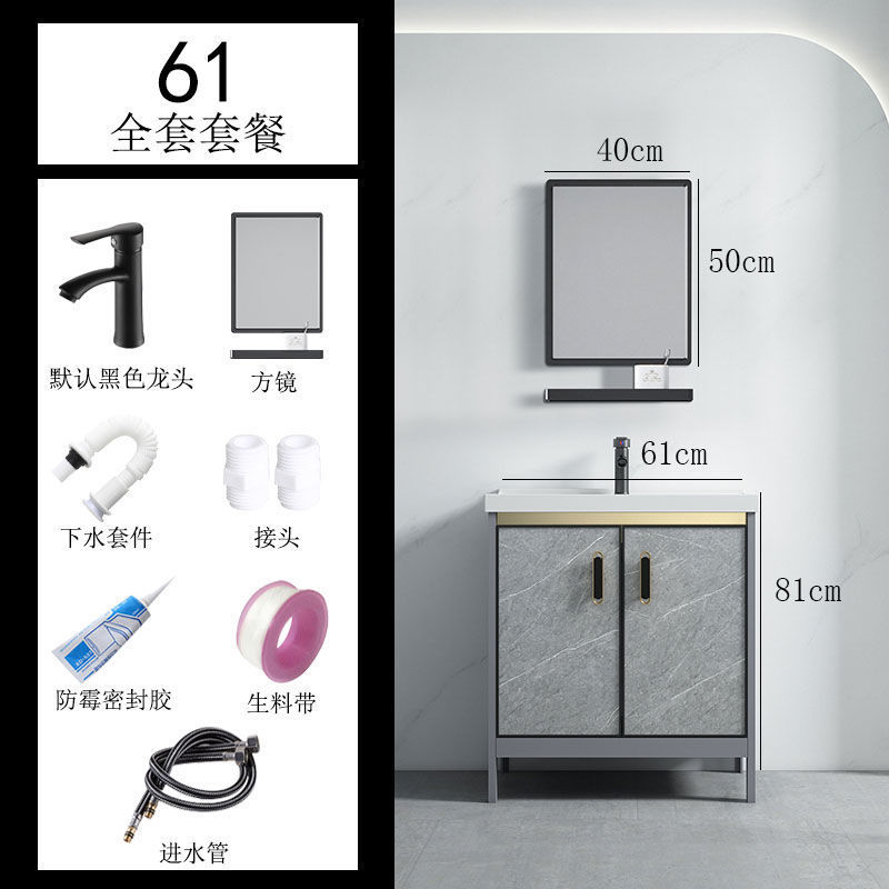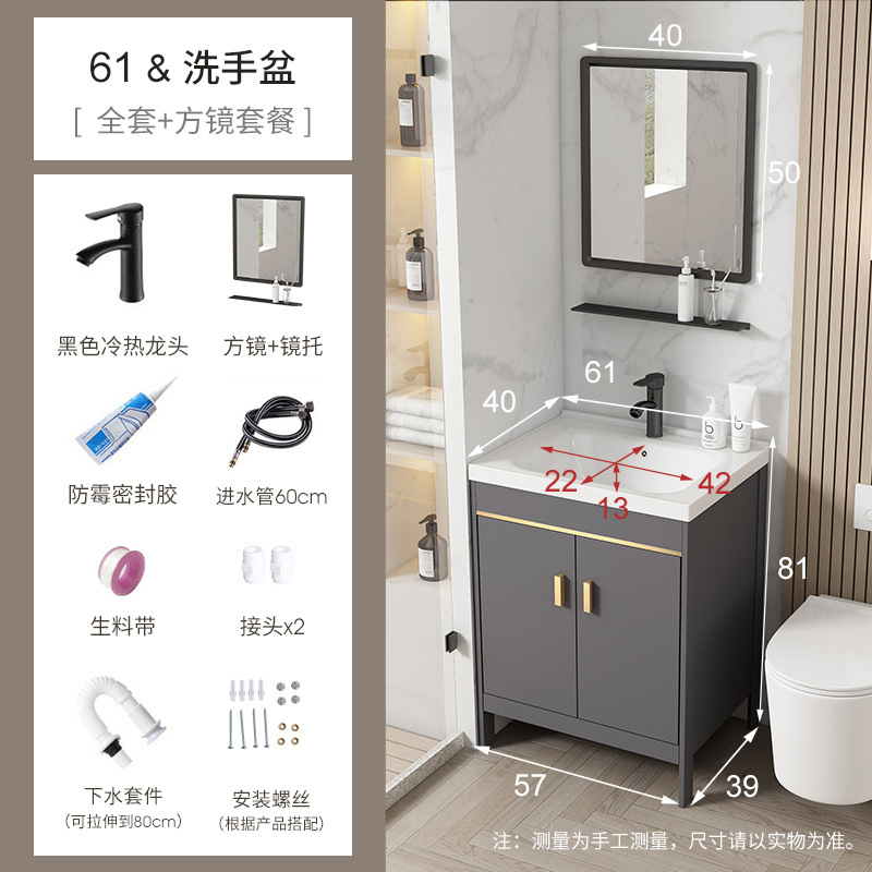 • 회색-61*40 캐비닛 세면대 + 하드웨어 전체 세트 + 거울