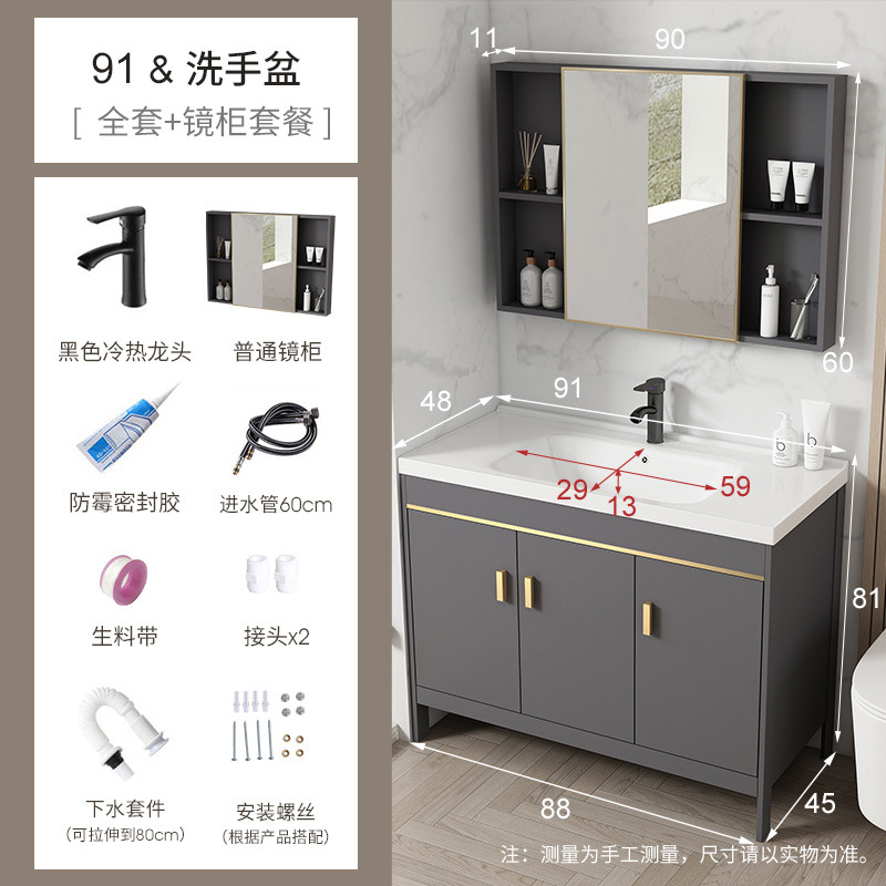 • 라이트 럭셔리 그레이-91*48 캐비닛 세면대 + 하드웨어 전체 세트 + 거울 캐비닛
