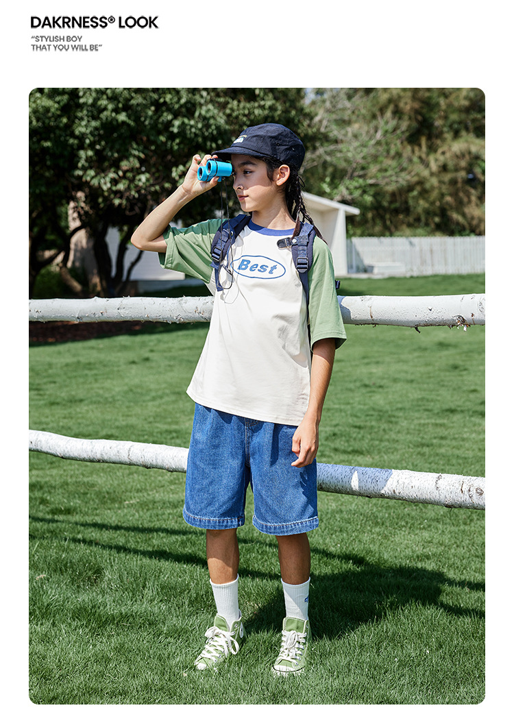 DK 아동복 25 여름 스타일 일본식 소녀 및 소년 복고풍 다용도 청바지 반바지 어린이 중대형 아동 캐주얼 5부 바지스토어 가기