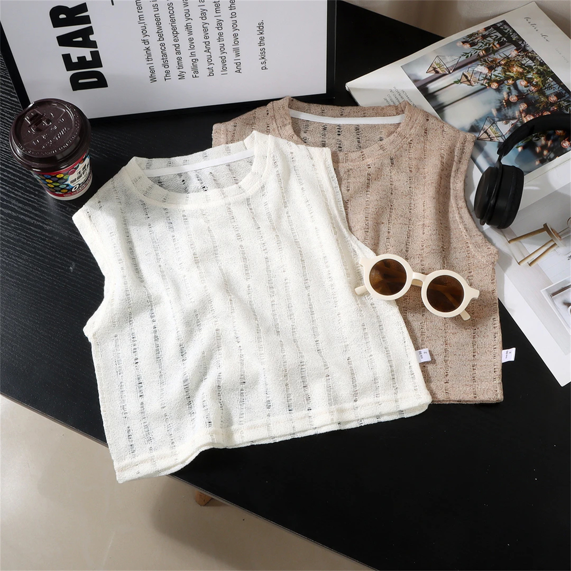 여름 속이 빈 아기 소년 다재다능하고 패셔너블하며 통기성이 뛰어나고 느슨한 민소매 니트 조끼 한국 스타일 트렌디 패션 스타일스토어 가기