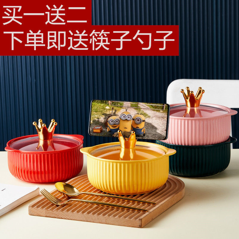 큰 그릇 가정용 수프 냄비 세라믹 수프 그릇 한식 수프 뚜껑 더블 귀 사발 보울 국수 보울 개성 안티 스케일 두껍게 절인 쌀