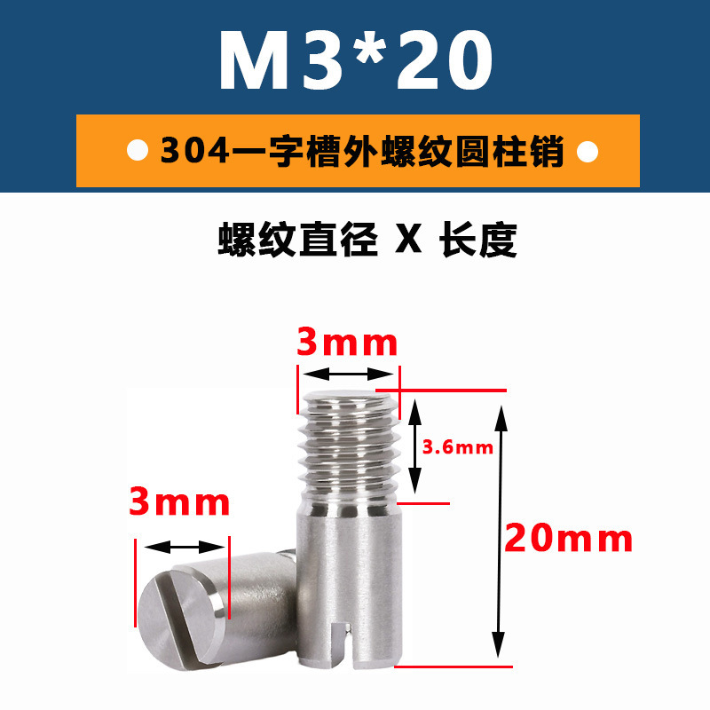 십억 잠금 304 스테인레스 스틸 GB878 외부 스레드 원통형 핀 슬롯 포지셔닝 핀 샤프트