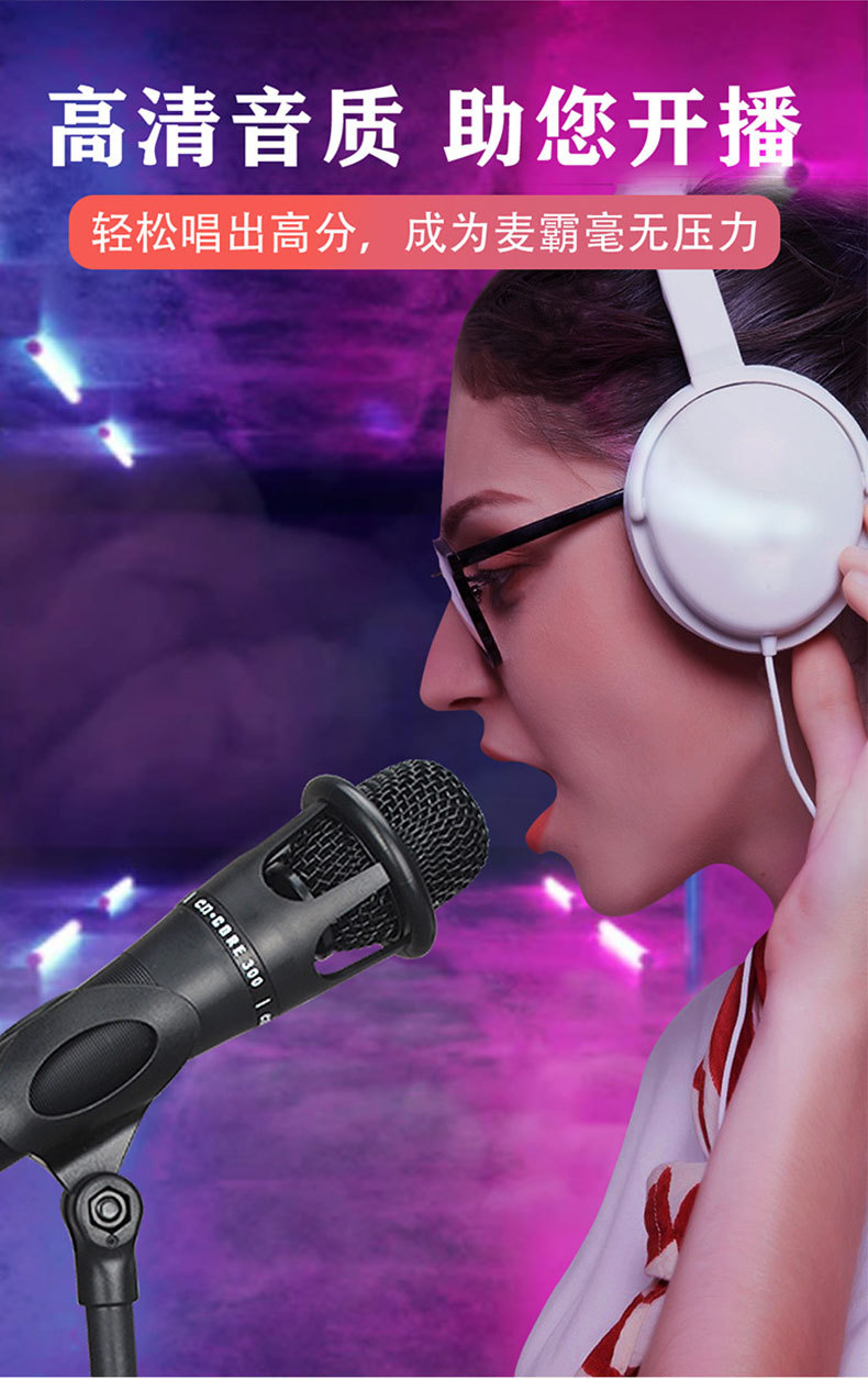 올플라스틱 무게추 내장 e300 핸드헬드 콘덴서 마이크 휴대폰 컴퓨터 라이브 방송 노래 녹음 음성 마이크 해외배송스토어 가기