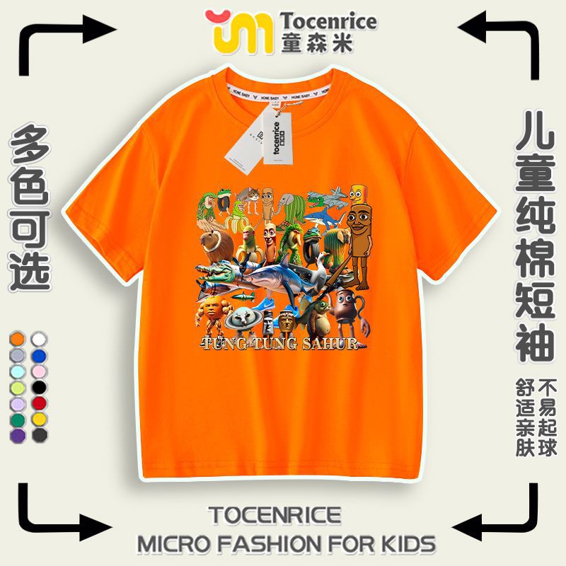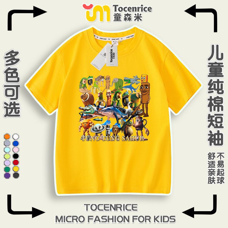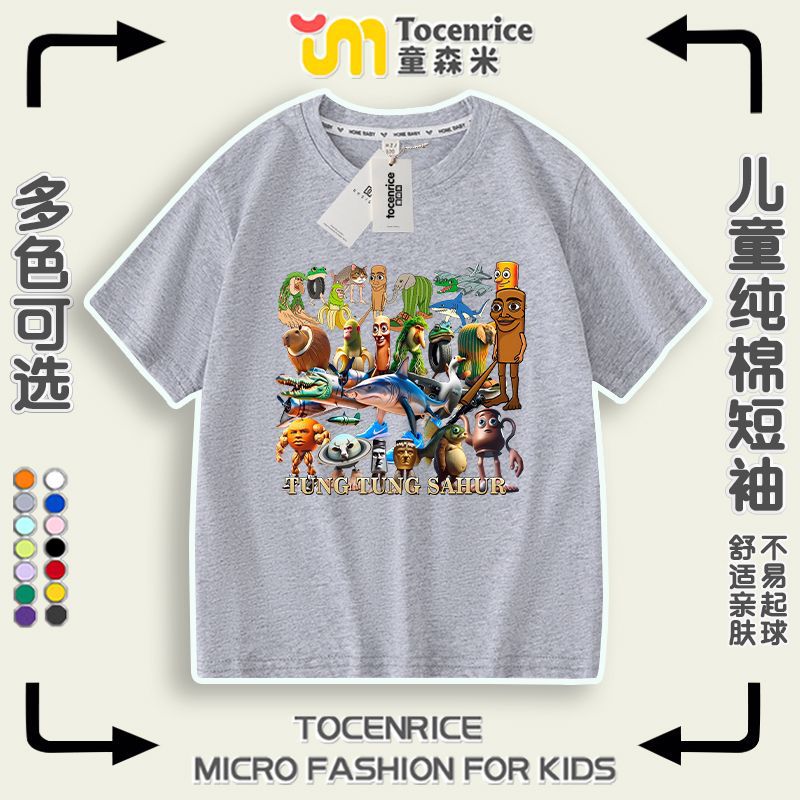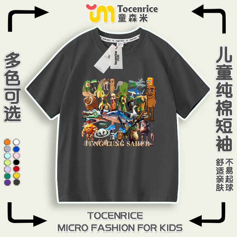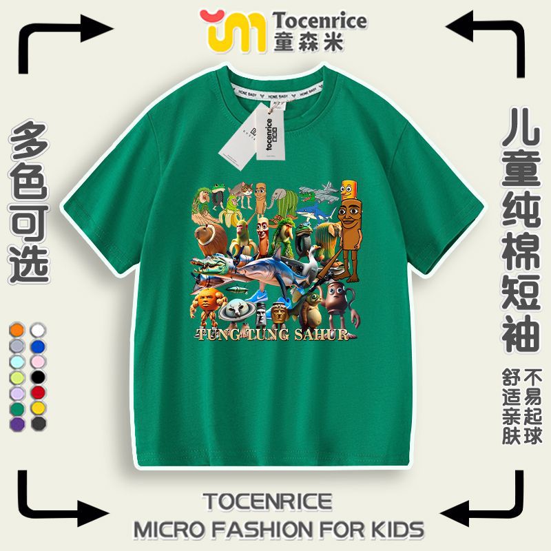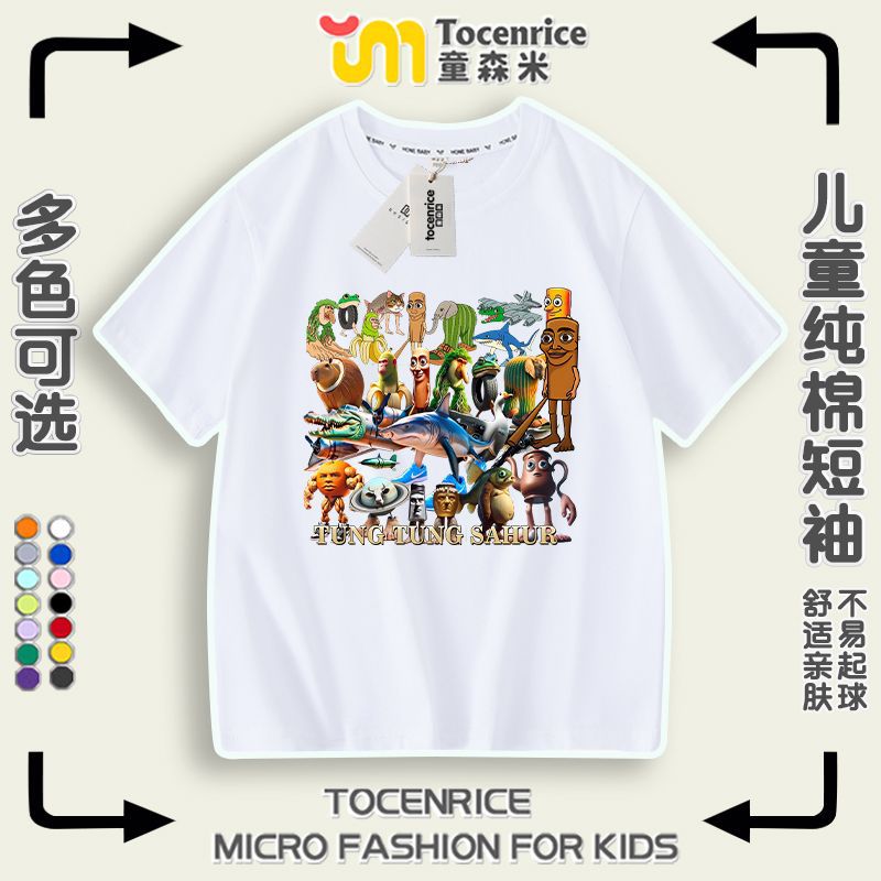 새로운 나무 막대기 남자 통통 옷 반팔 티셔츠 어린이 여름 tungtungsahur 외국 산과 바다 트렌드스토어 가기