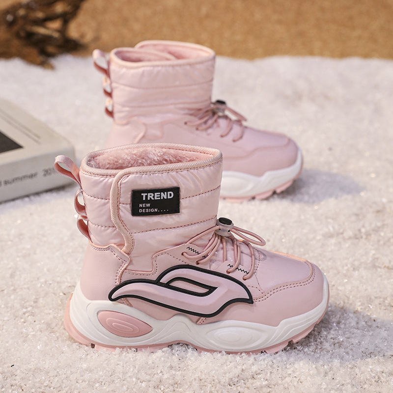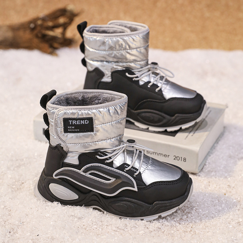 중대형 어린이를 위한 새로운 겨울 따뜻한 어린이 신발, 남아 및 여아용 두꺼운 스노우 부츠, 벨벳 대형 면화 및 면 부츠