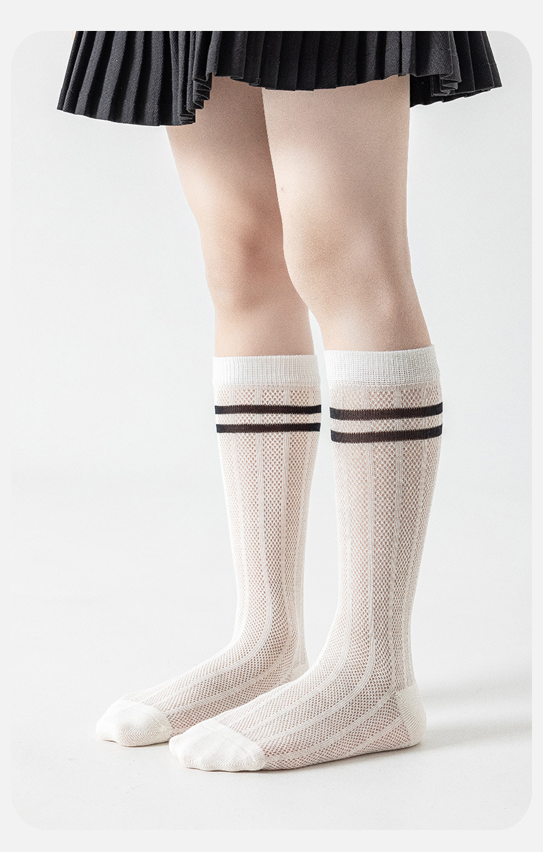 [뼈없음] 어린이 종아리 양말 여름 초박형 학생 양말 소녀 소년 흰색 통기성 긴 아기 양말