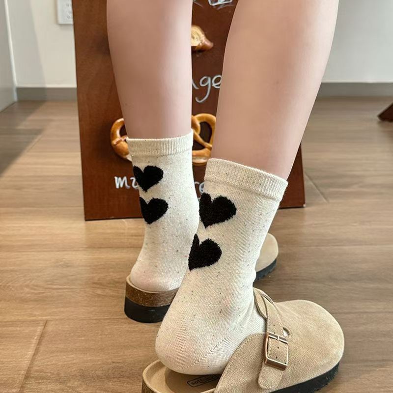 가을 신제품 아이디어 원사 솔리드 컬러 인 귀여운 곰 도파민 대학 여성 중간 튜브 양말 2024 새로운 사랑