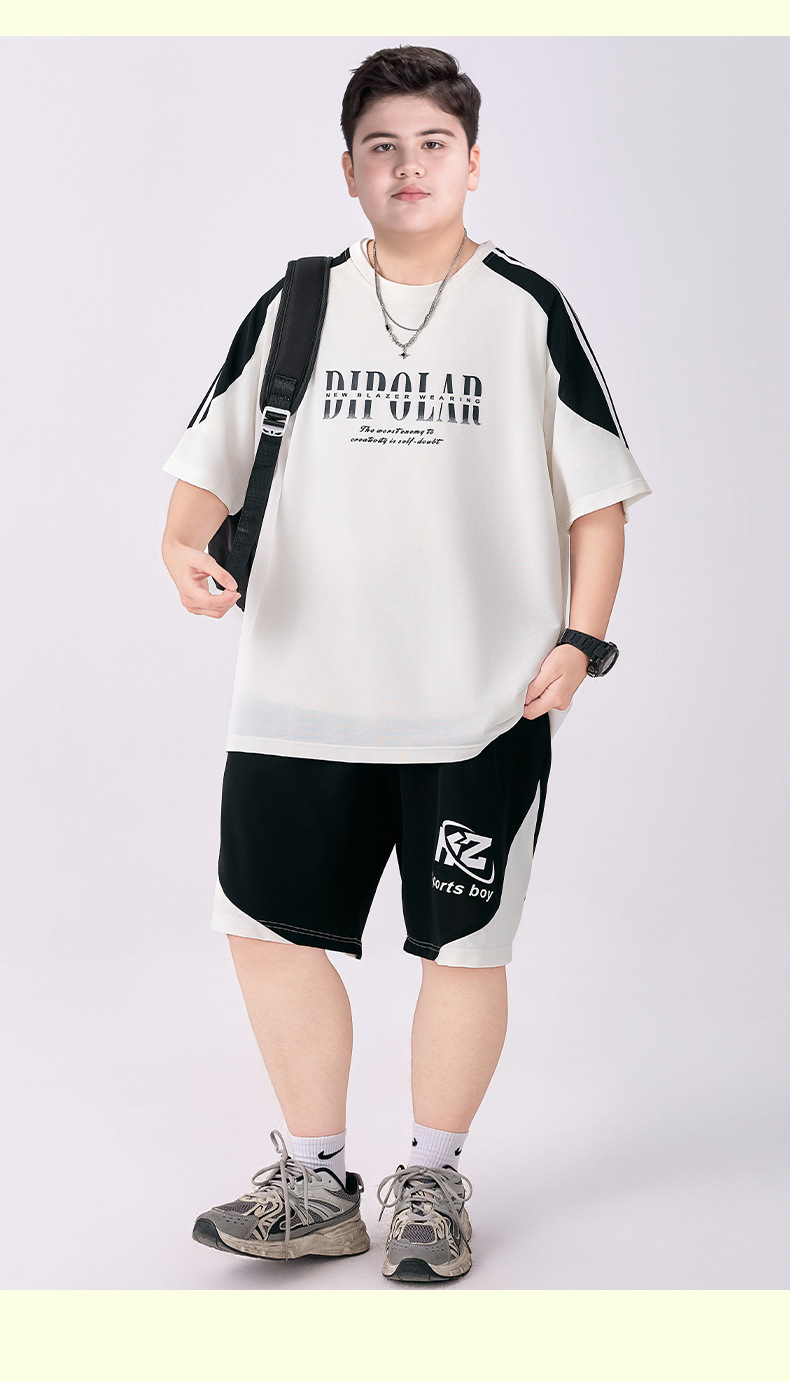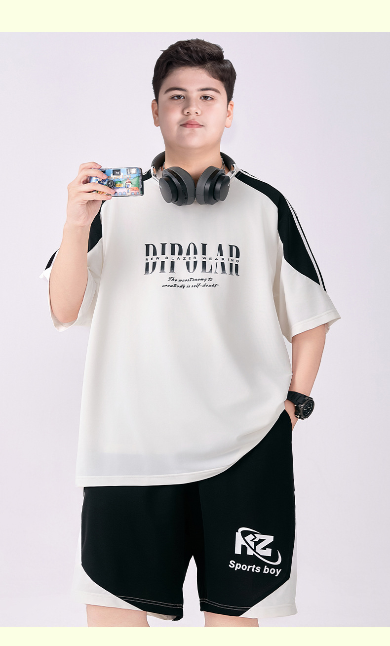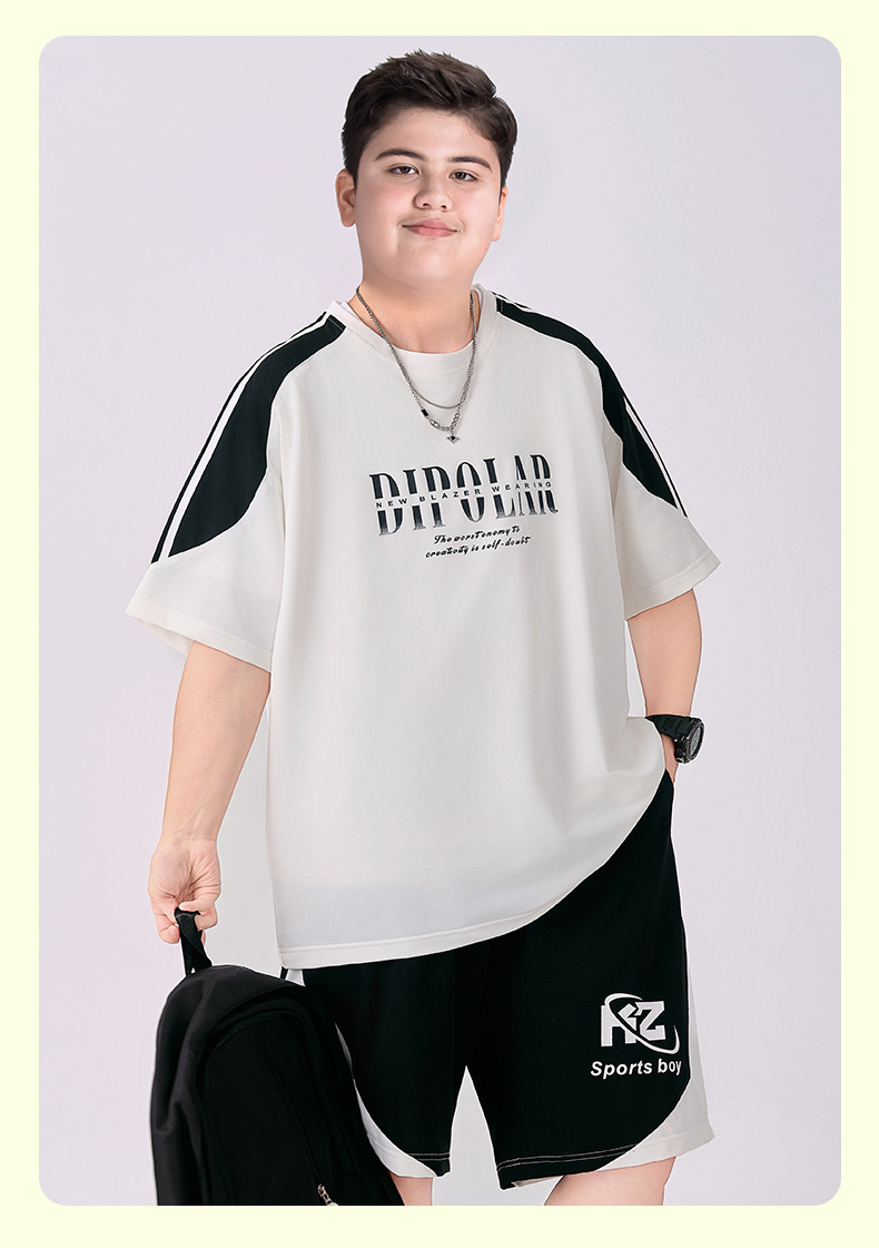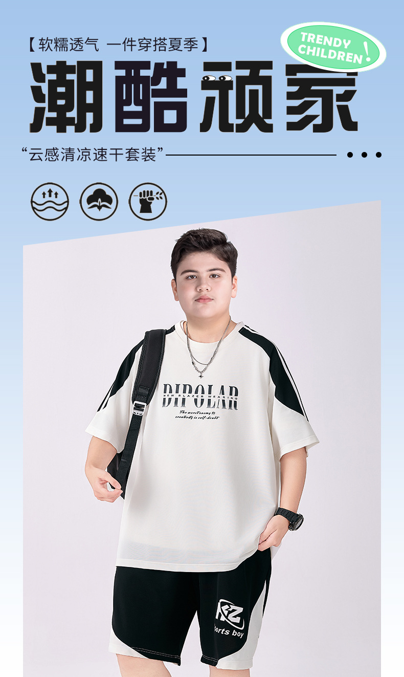 뚱뚱한 아동복 소년 속건성 양복 플러스 뚱뚱한 여름 옷 2025 새로운 중학생 스포츠 투피스 세트 중대형 어린이스토어 가기