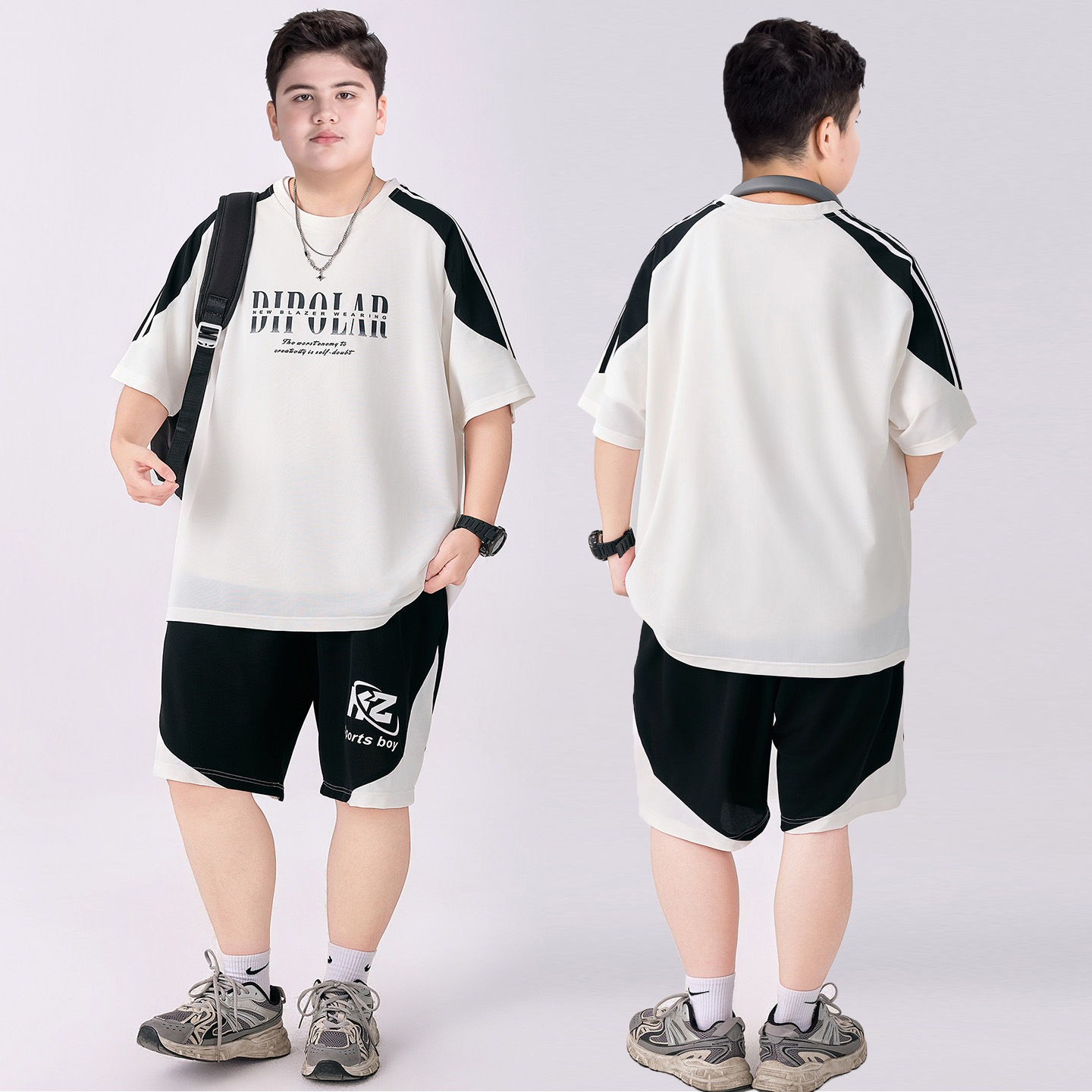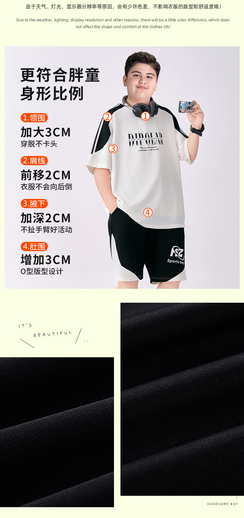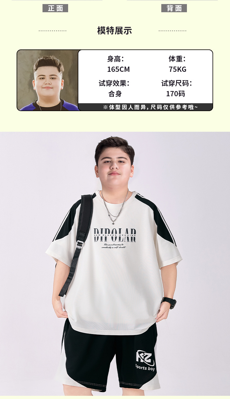 뚱뚱한 아동복 소년 속건성 양복 플러스 뚱뚱한 여름 옷 2025 새로운 중학생 스포츠 투피스 세트 중대형 어린이스토어 가기