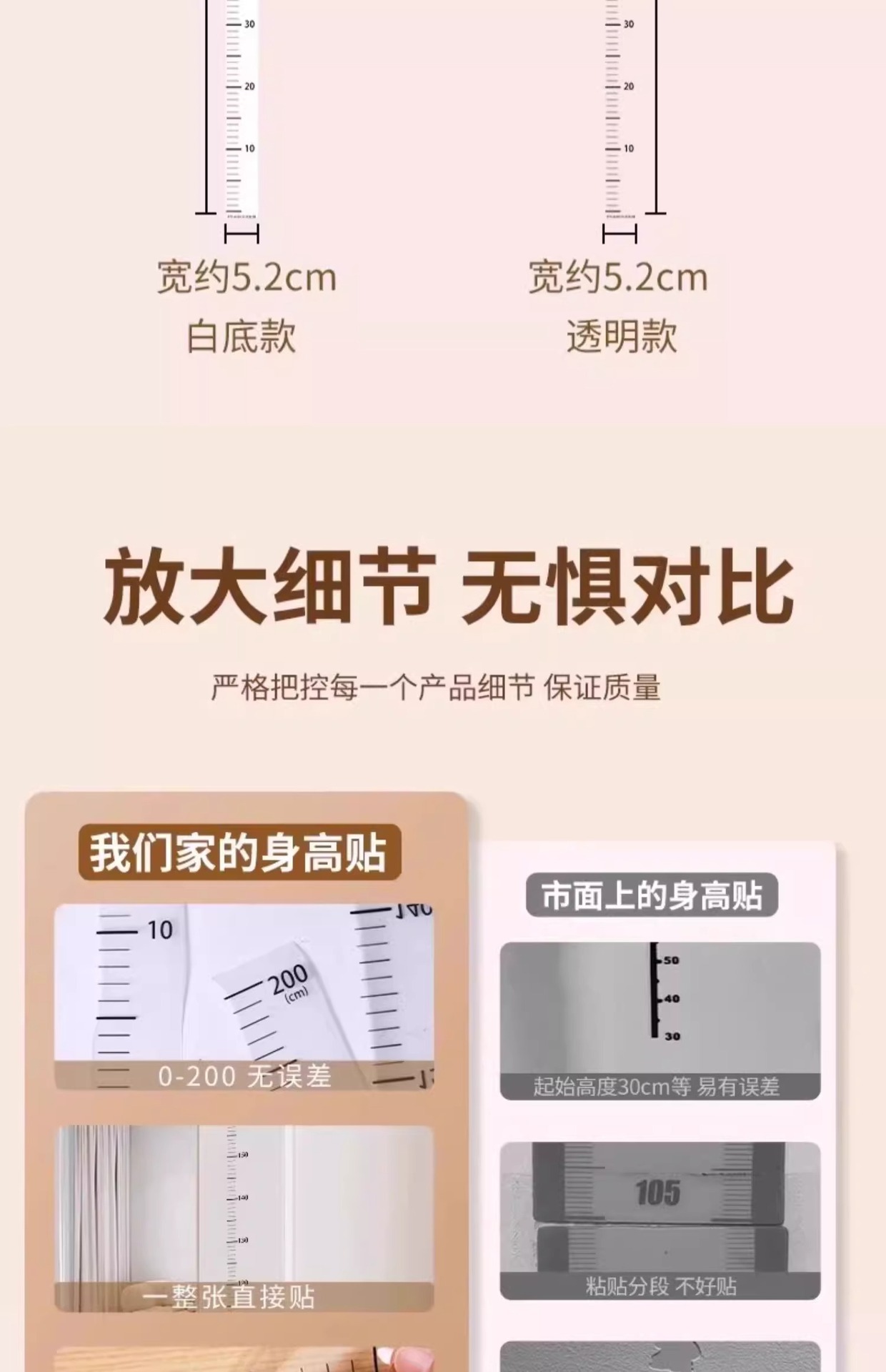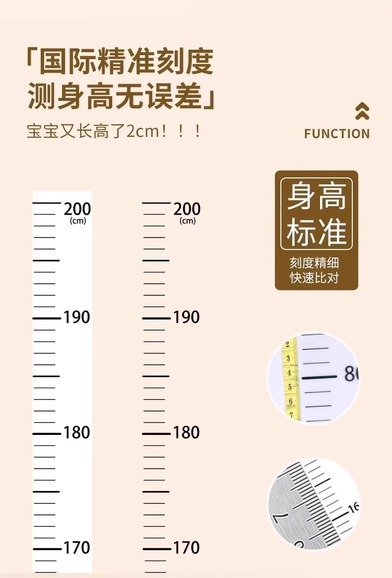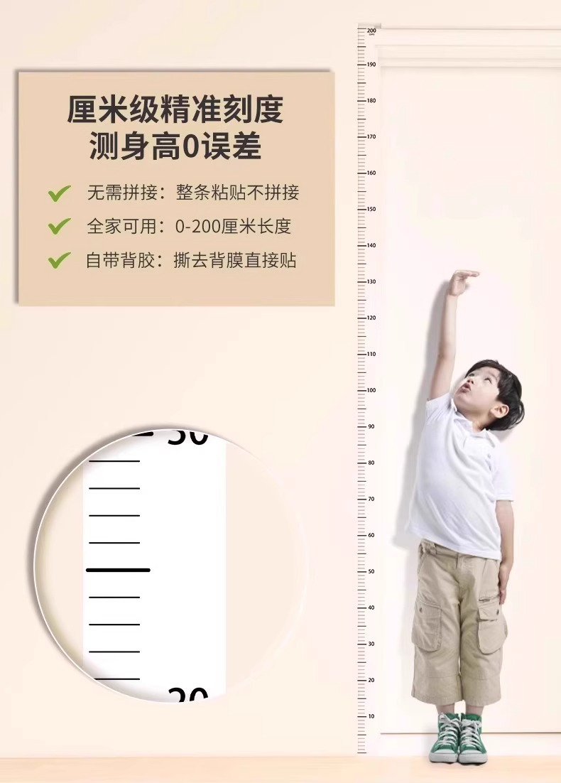어린이 키 측정 벽 스티커 2m 전체 고정밀 어린이 가정용 키 측정 도구는 벽을 손상시키지 않고 제거 가능스토어 가기