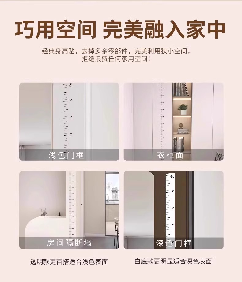 • 키 측정 벽 스티커 [화이트 + 투명 스타일] 2롤