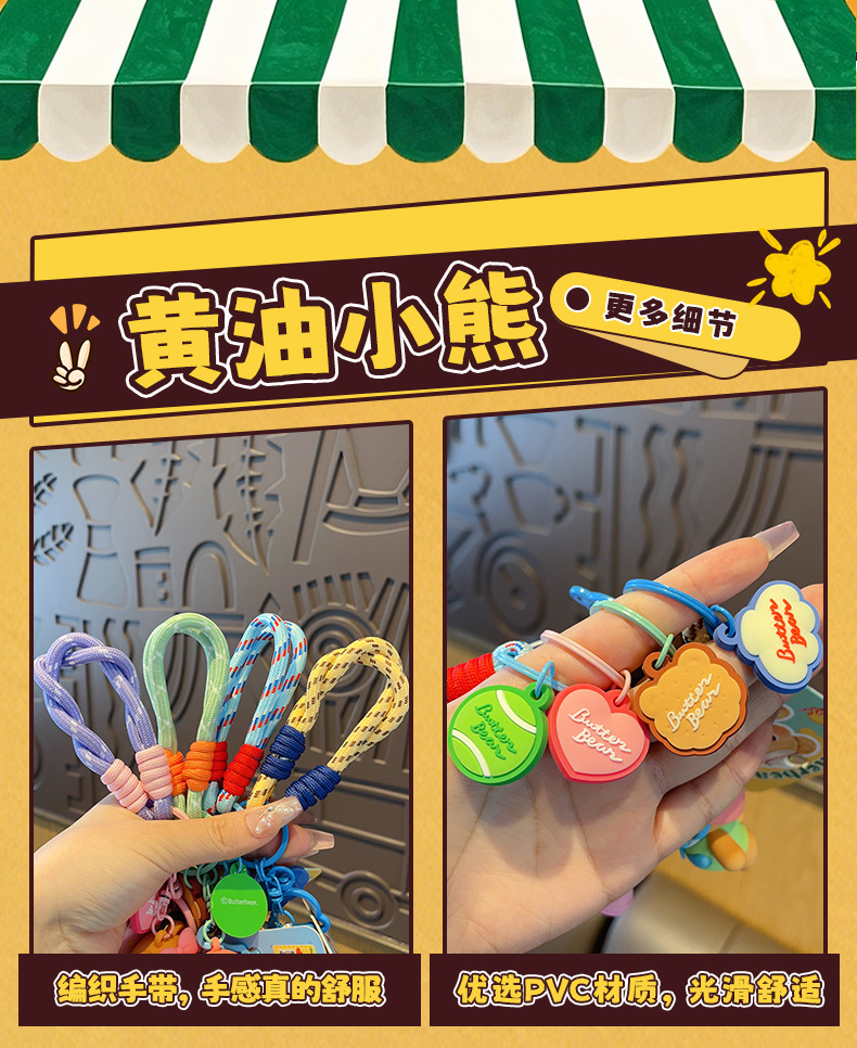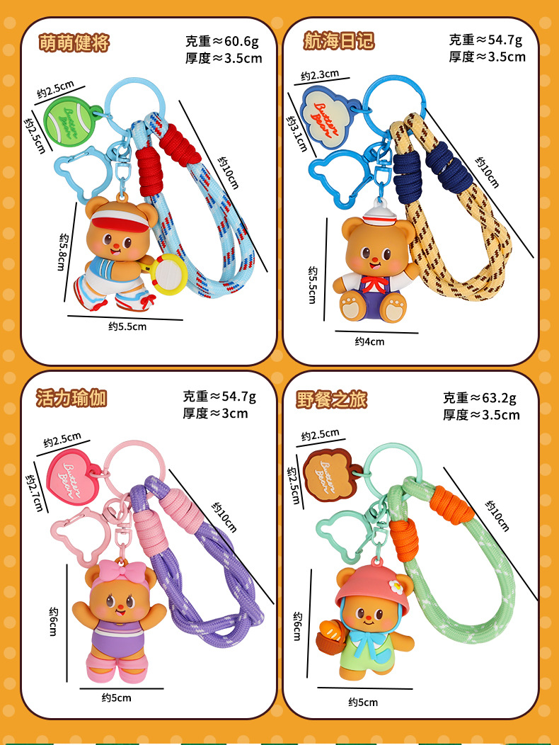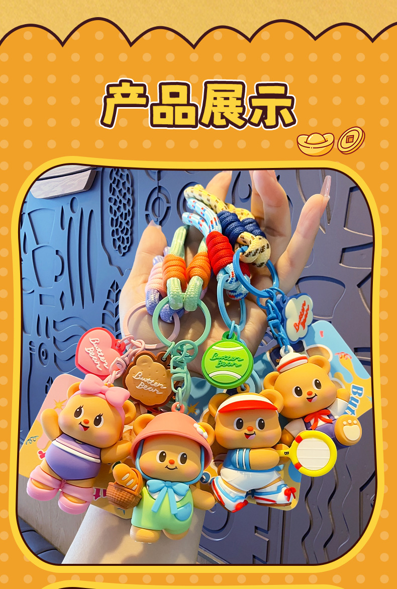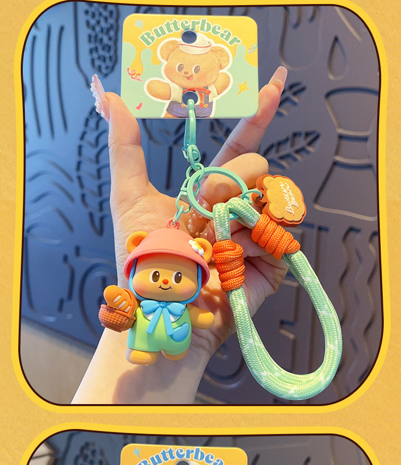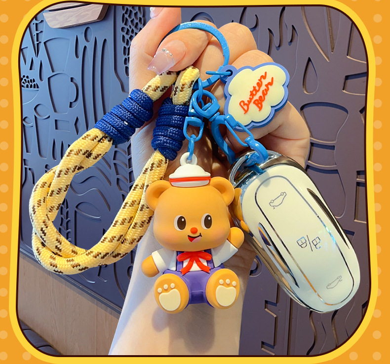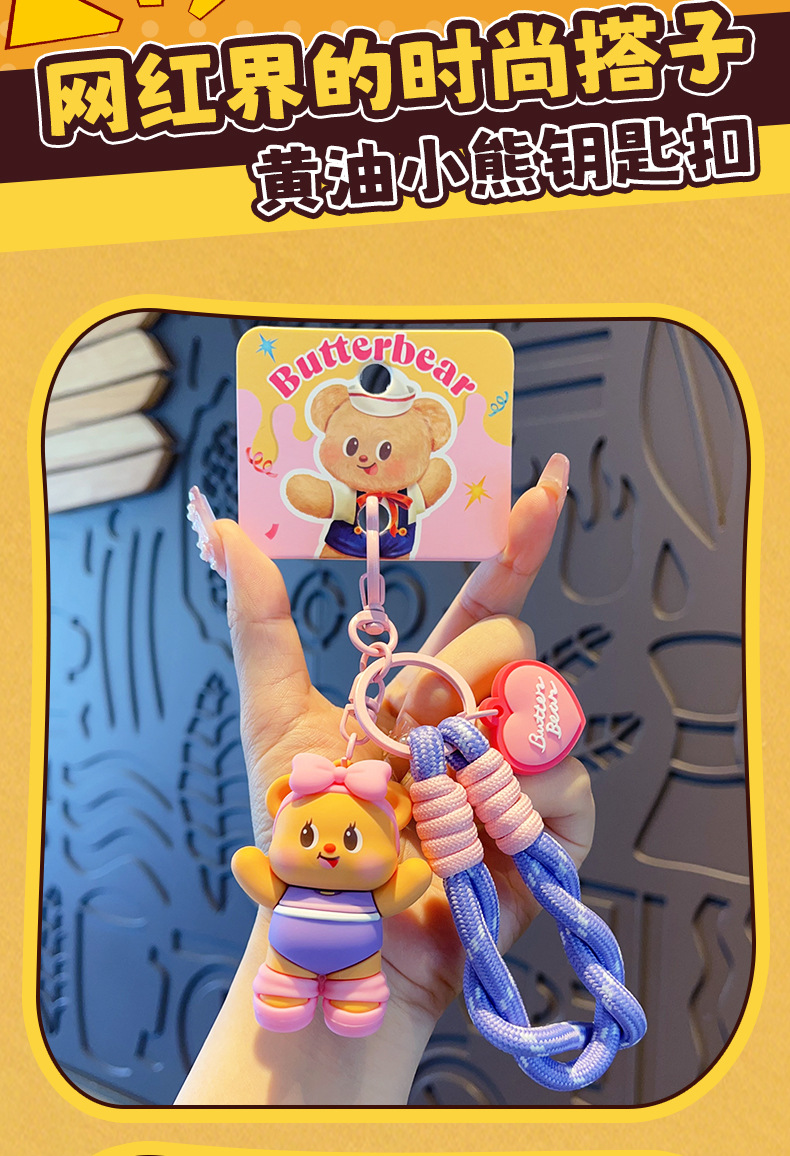 정품 귀여운 버터 베어 키 체인 크리 에이 티브 펜던트 자동차 키 체인 가방 작은 펜던트 커플 작은 선물스토어 가기