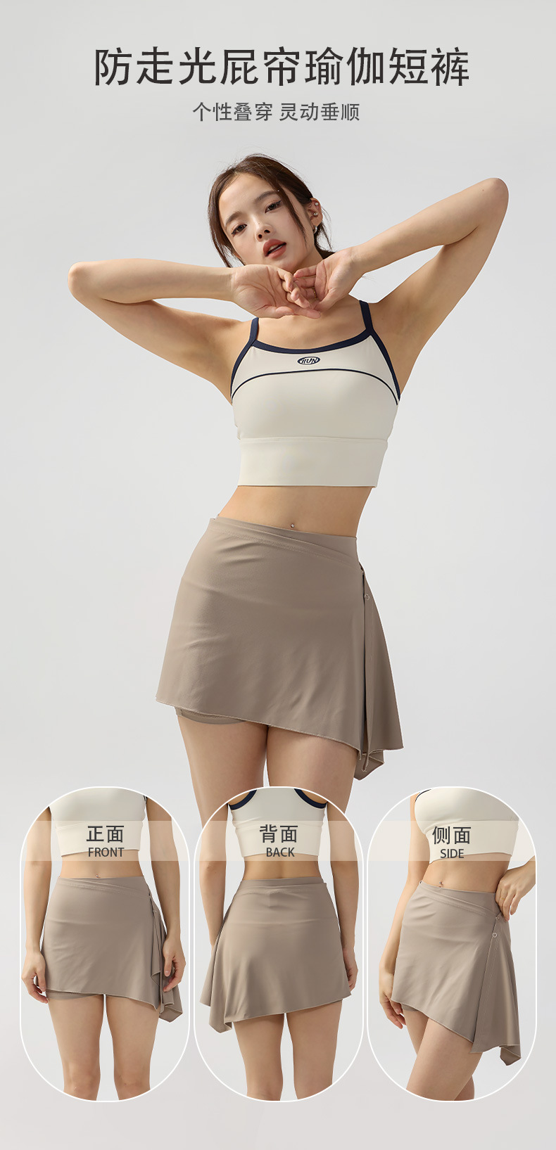 가짜 투피스 요가 스커트, 스포츠 루즈 힙 커튼, 필라테스 피트니스웨어, 트레이닝 런닝 스포츠 얇은 스커트