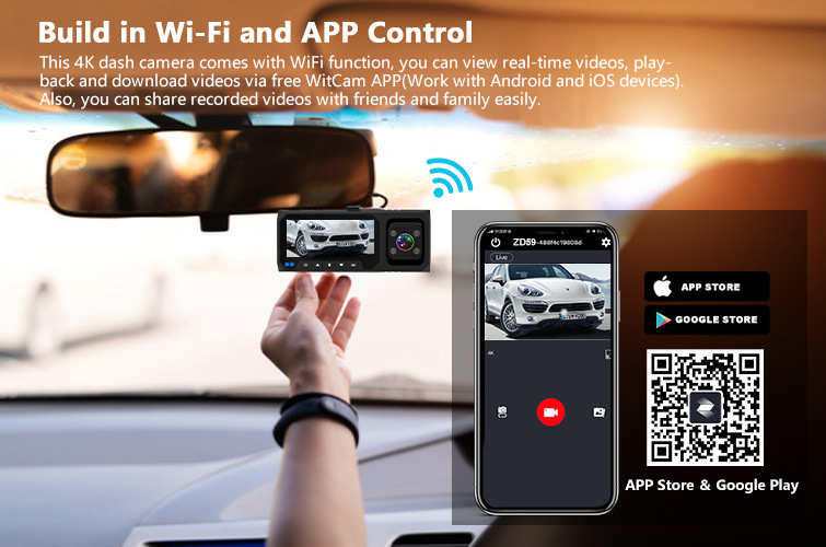 4K 운전 기록 장치, 3개의 카메라, 적외선 야간 투시경, WiFi+256G 슈퍼 커패시터 주차 모니터링 GPS를 위한 국경 간 전문 공급스토어 가기