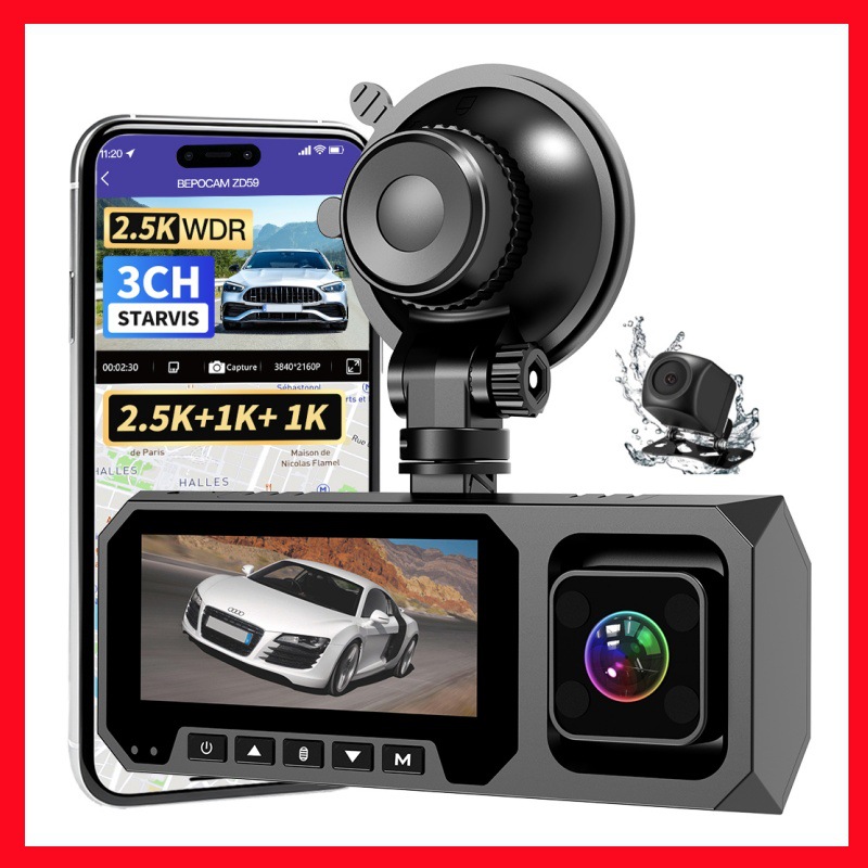 4K 운전 기록 장치, 3개의 카메라, 적외선 야간 투시경, WiFi+256G 슈퍼 커패시터 주차 모니터링 GPS를 위한 국경 간 전문 공급
