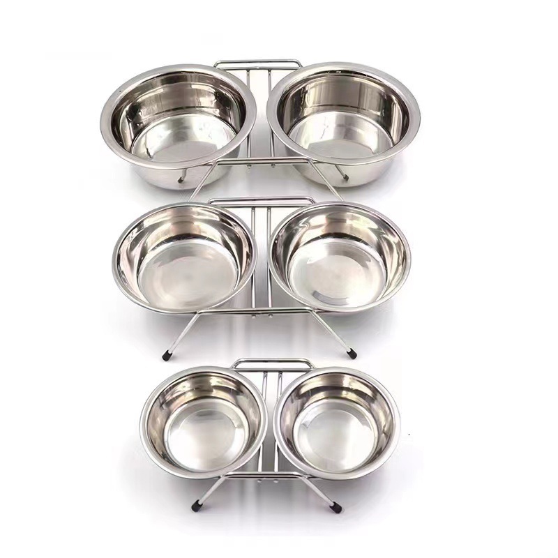 스테인레스 스틸 애완 동물 그릇 미끄럼 방지 스탠드 포함 이중 식품 그릇 바닥 장착형 이중 그릇 개 그릇 라인 철 프레임 고양이 그릇 피더스토어 가기