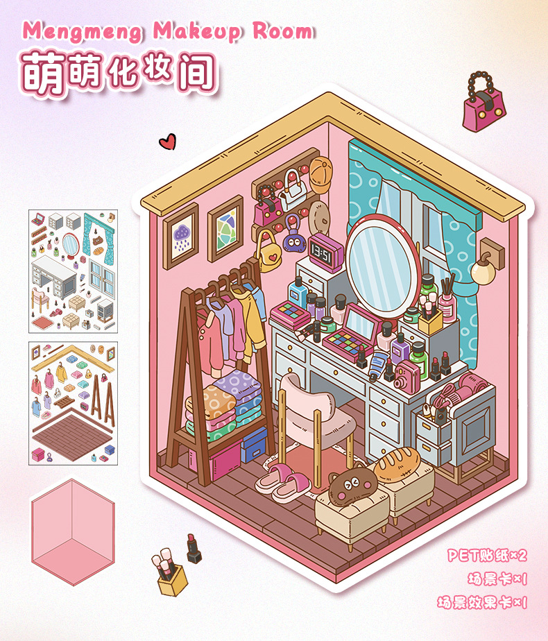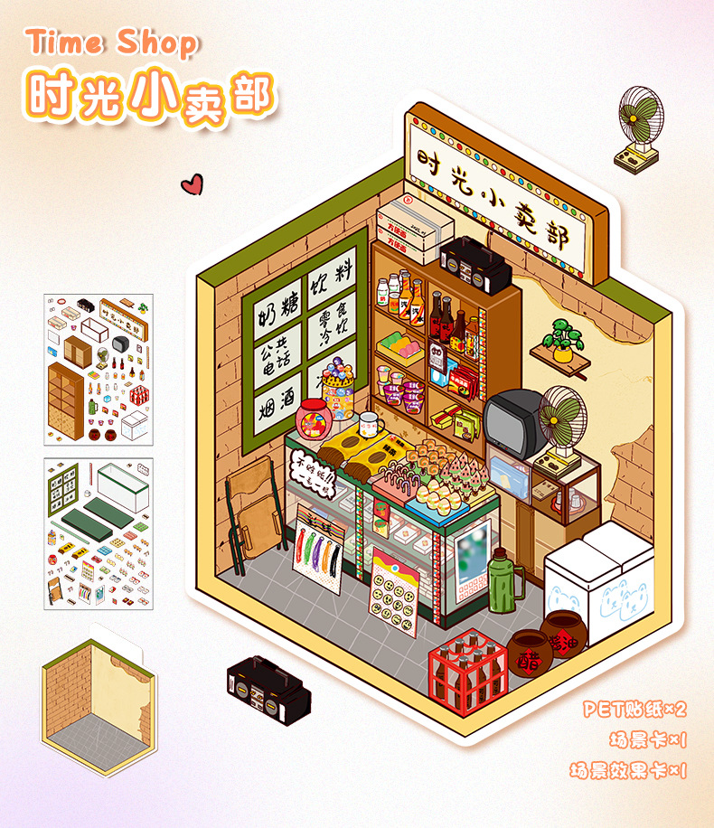 방 코너 조경 스티커 귀여운 3D 입체 오두막 크리 에이 티브 미니어처 장면 DIY 어린이 스티커스토어 가기
