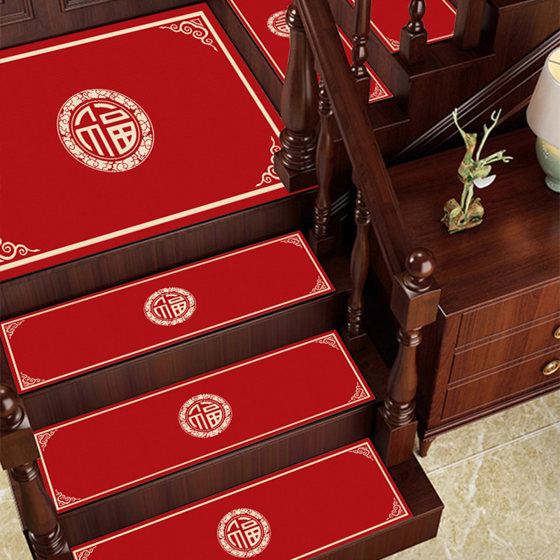 새로운 중국 스타일 Diatom 진흙 계단 매트 흡수성 더티-저항하는 쉬운 관리 비 슬립 매트 가정용 레드 축제 장식 발 매트
