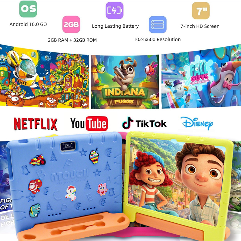 This kids edition tablet has a built-in high-performance quad-core processor and Android 11, 1024x600 IPS HD display, Wifi, Bluetooth, dual camera, touch screen, 2GB RAM and 32GB ROM. You can expand the storage(Expandable 128GB) for storing photos, music and videos with additional micro SD card extensions. A more stable Wifi module and a durable battery give you a better experience. You will get a powerful all-in-one device. PRITOM Kids Tablet will provide you