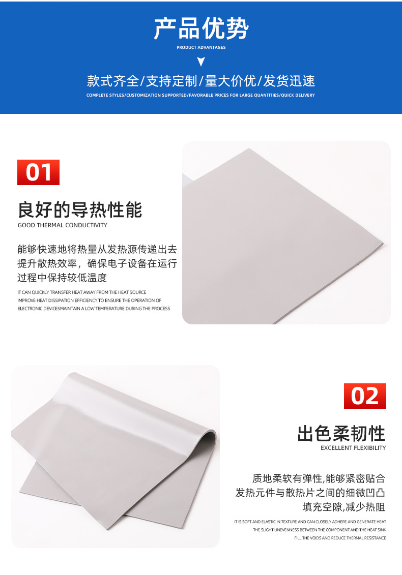 제조업체 도매 방열 및 열전도 패드 노트북 그래픽 카드 메모리 패드 실리콘 그리스 패드 열전도 고온 저항 고정전기 방지