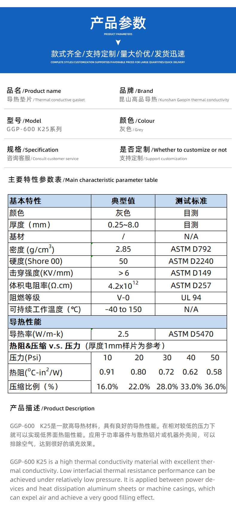 • GGP-600 K25 시리즈 열전도성 가스켓 맞춤 제작
