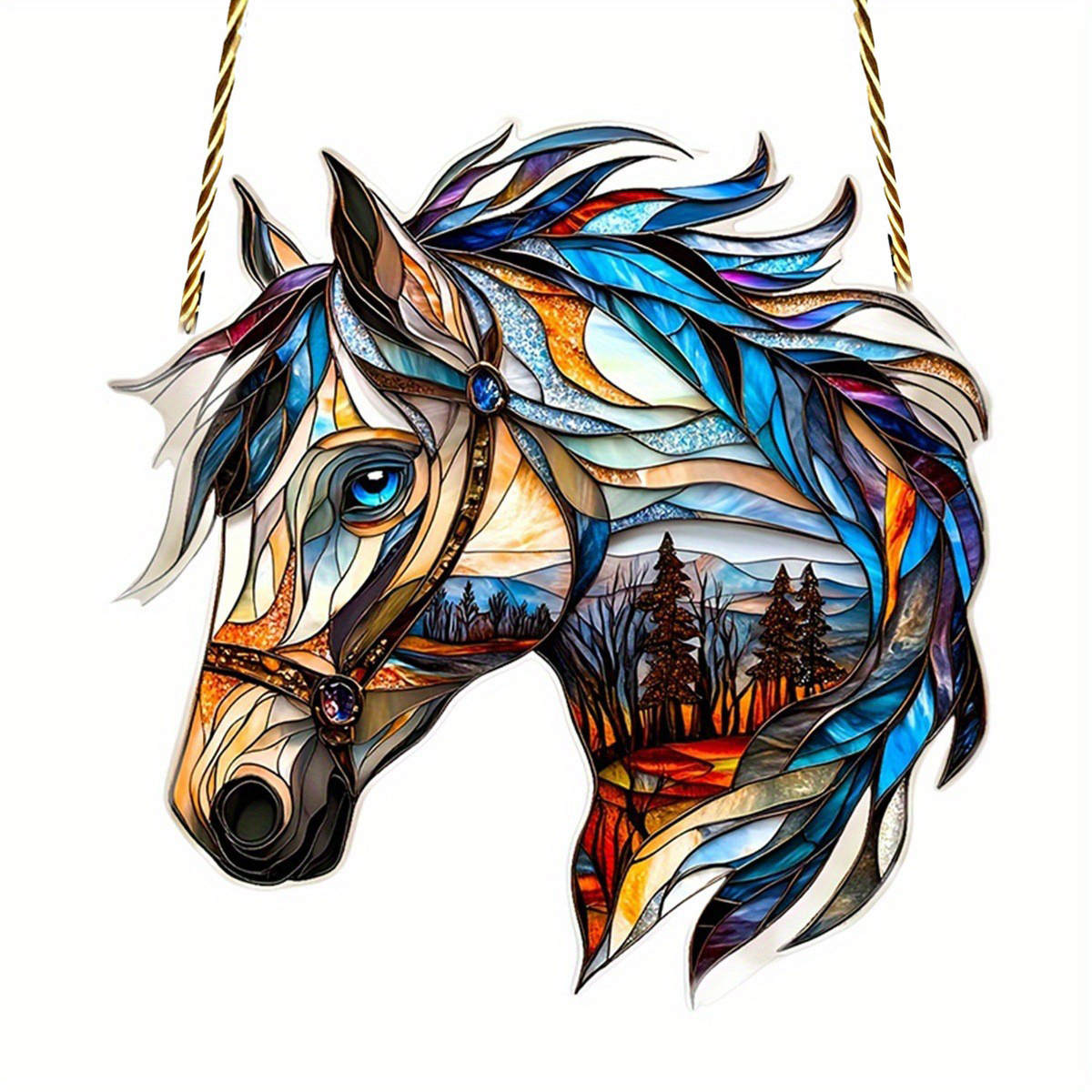 2D 평면 컬러 말/늑대 아크릴 빛 포착 장식품 - 자연 테마 벽걸이 및 창문 장식, 일 포함스토어 가기