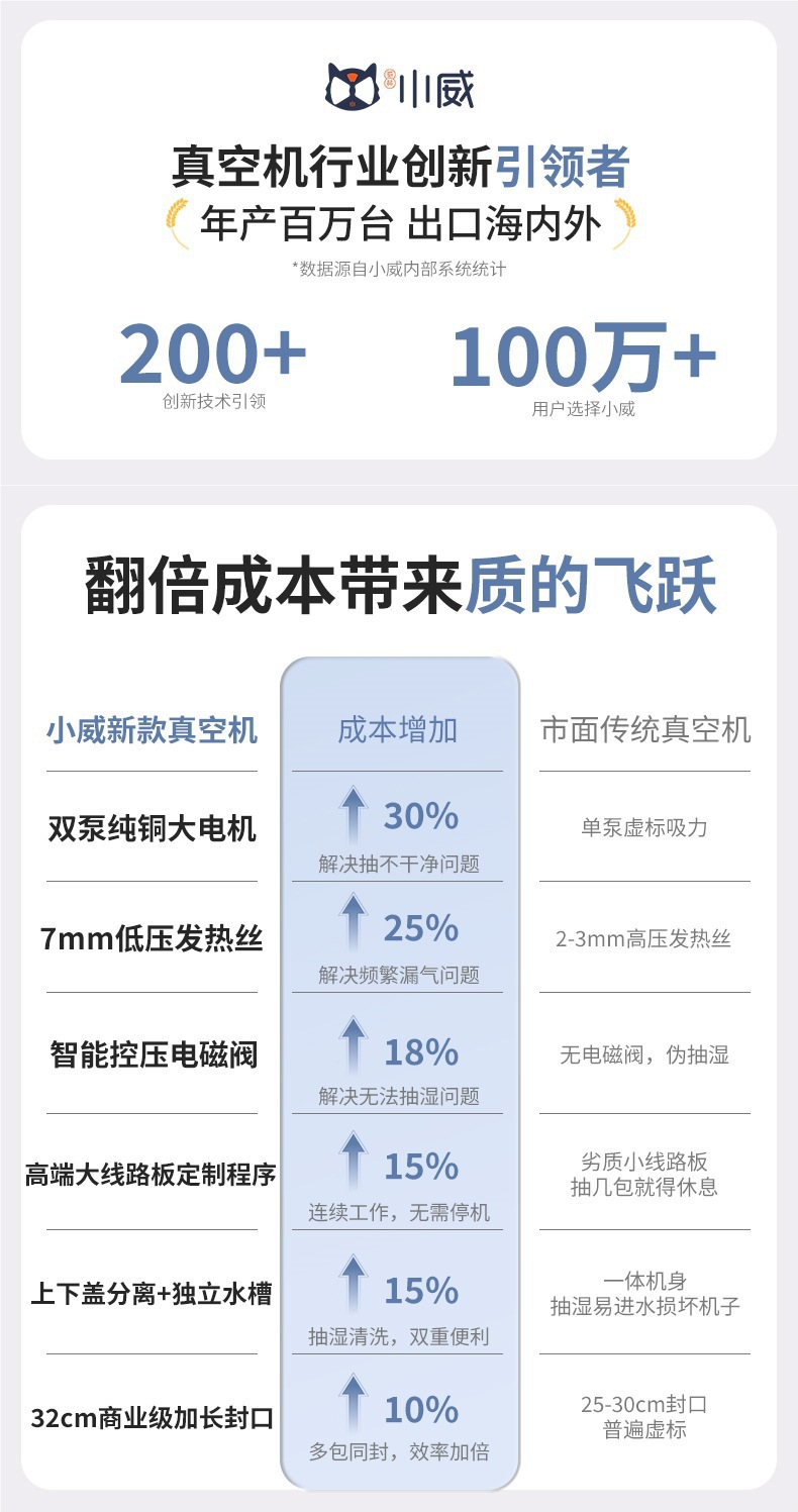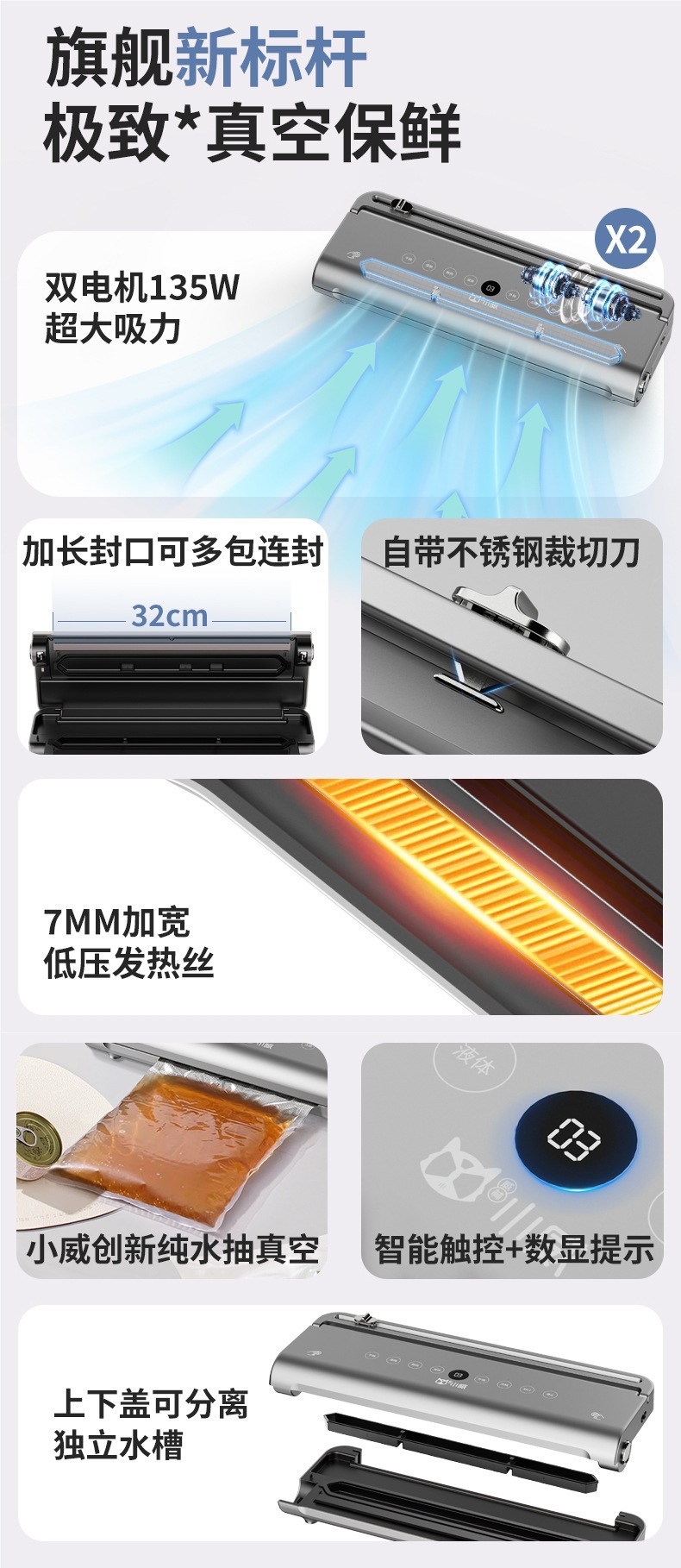 Xiaowei 이중 펌프 진공 밀봉 기계 소형 가정용 상업용 식품 보존 포장 기계 플라스틱 밀봉 완전 자동 밀봉스토어 가기