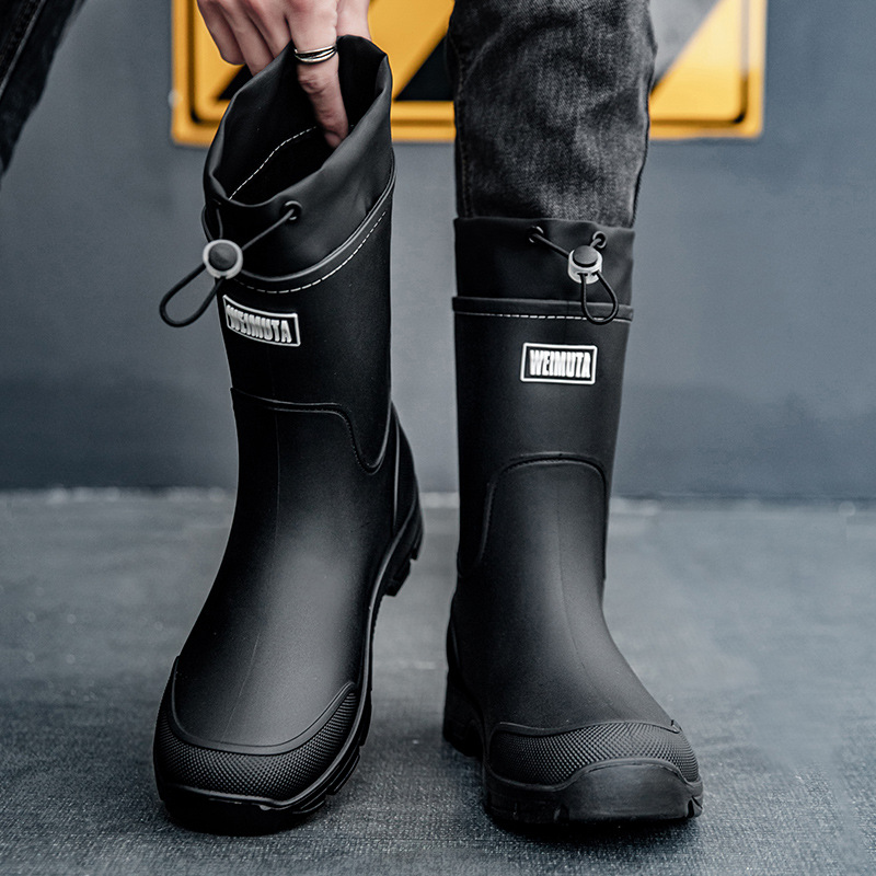 남녀공용 크로스보더 인기 일본 및 한국 패션 미드튜브 레인부츠, 미끄럼 방지 방수화, 대형 작업용 장화, 고무신, 웨이딩스토어 가기