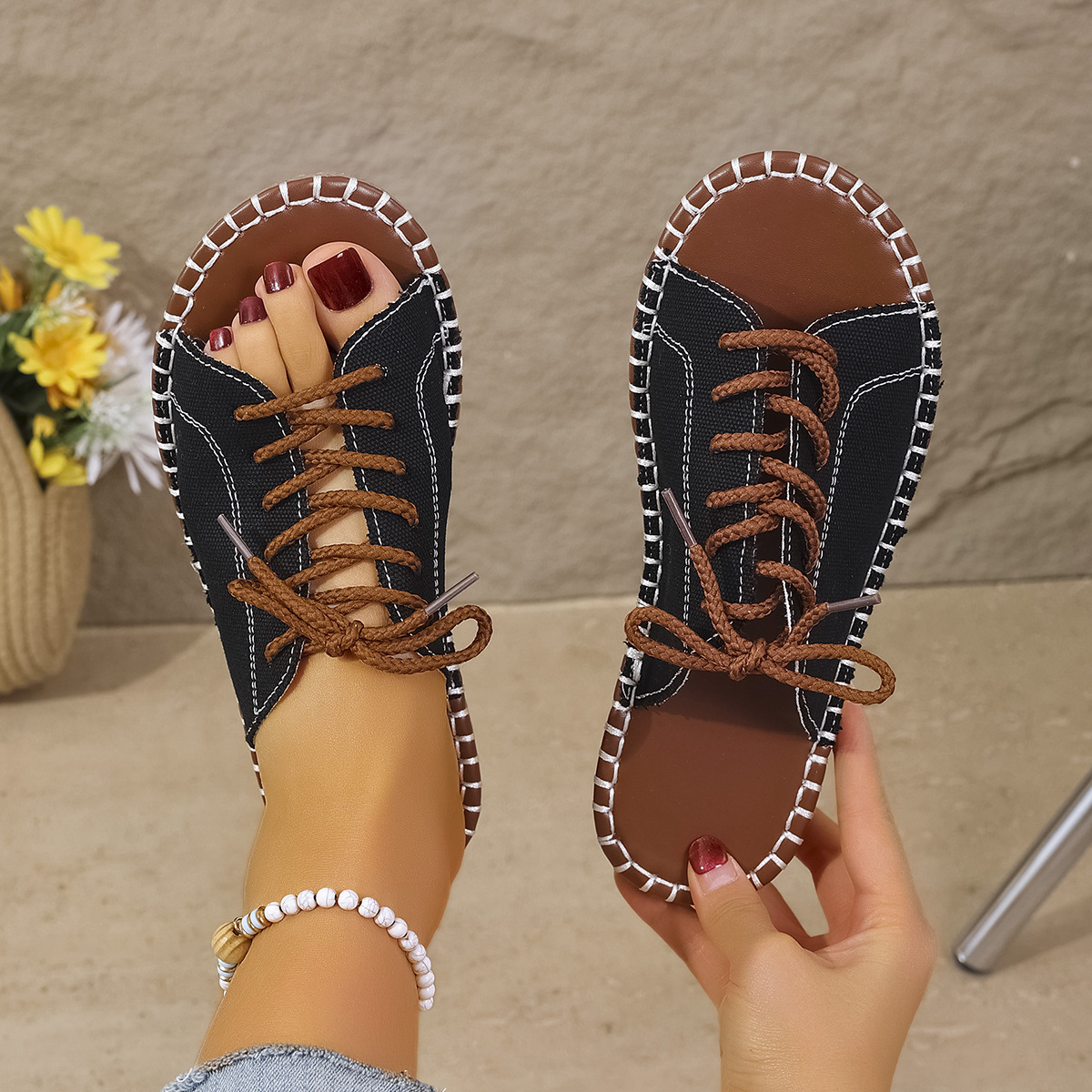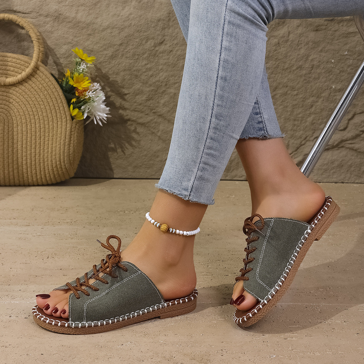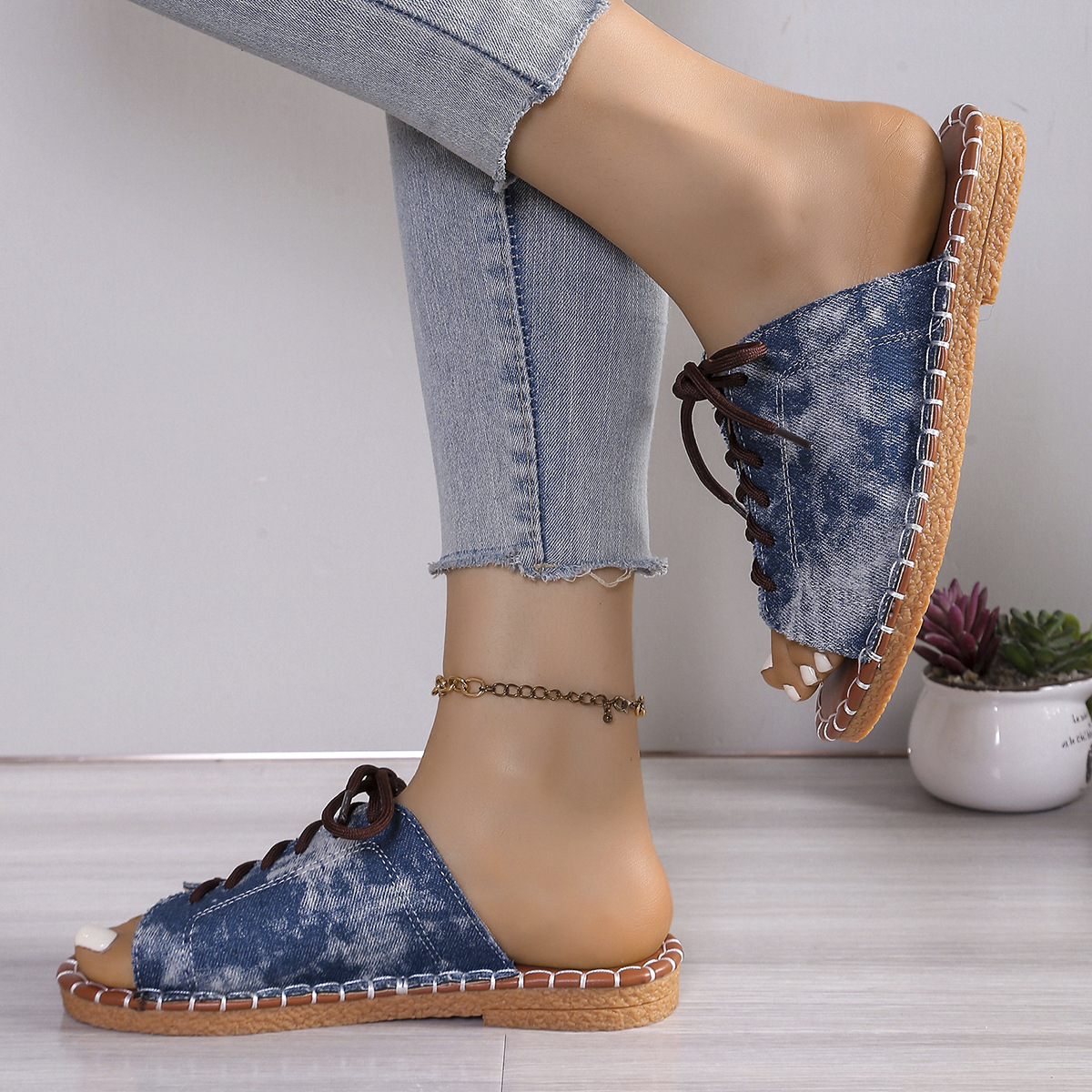 대외 무역 새로운 2025 여름 캔버스 한국식 여성용 샌들 플랫 힐 플러스 사이즈 샌들 데님 신발 재고스토어 가기