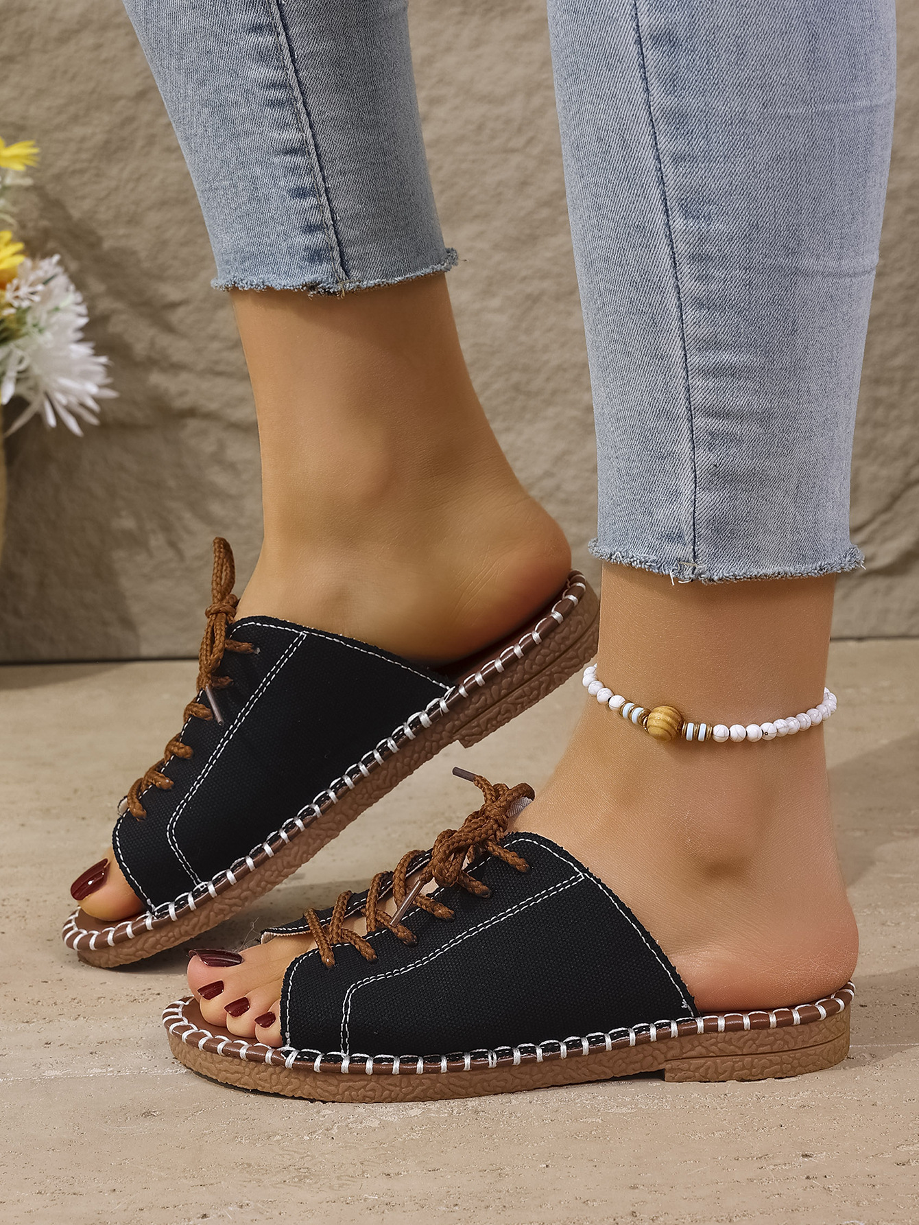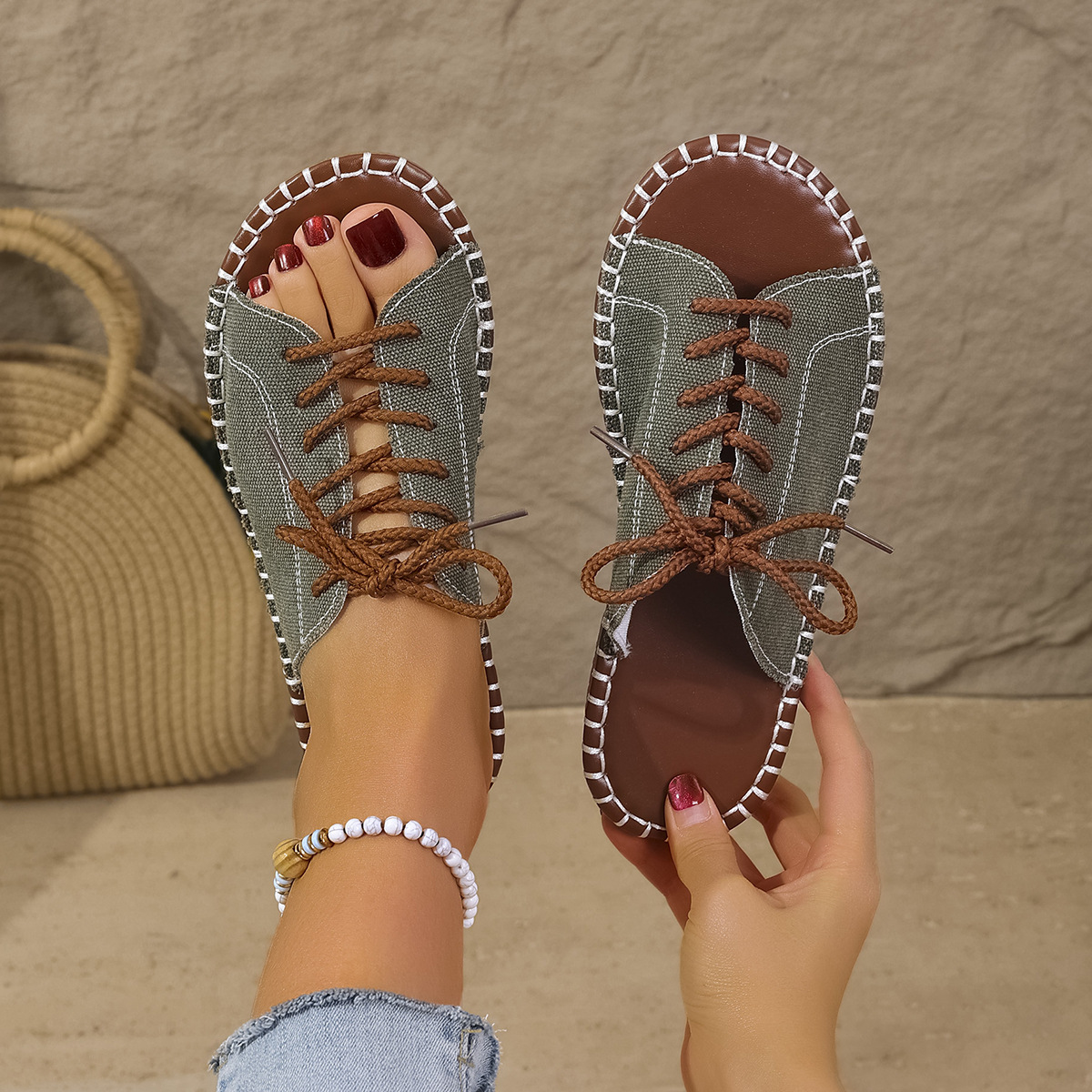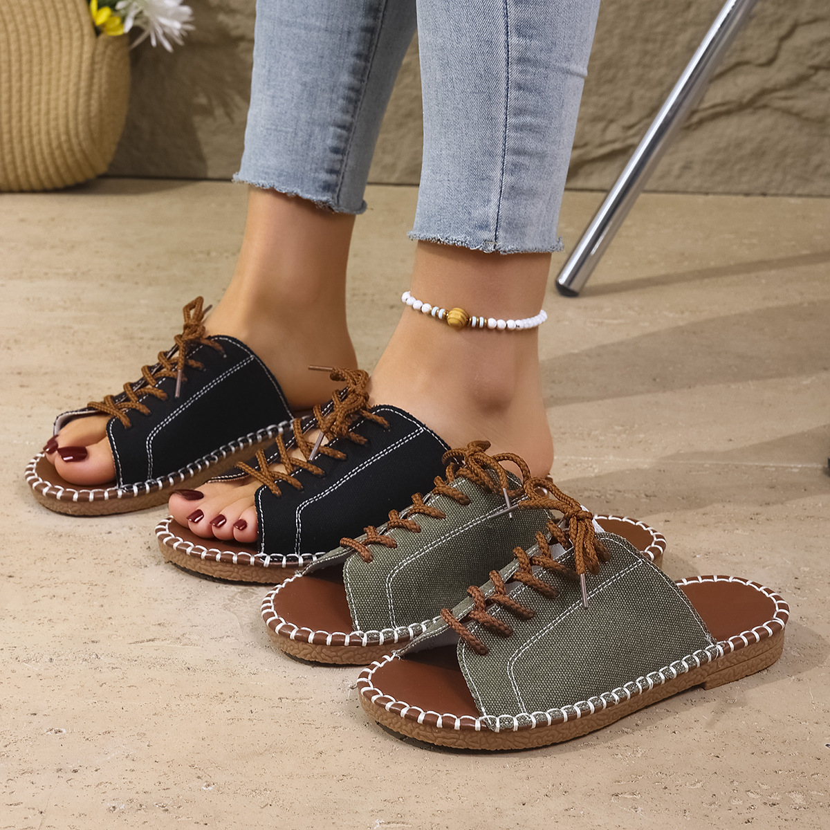 대외 무역 새로운 2025 여름 캔버스 한국식 여성용 샌들 플랫 힐 플러스 사이즈 샌들 데님 신발 재고스토어 가기