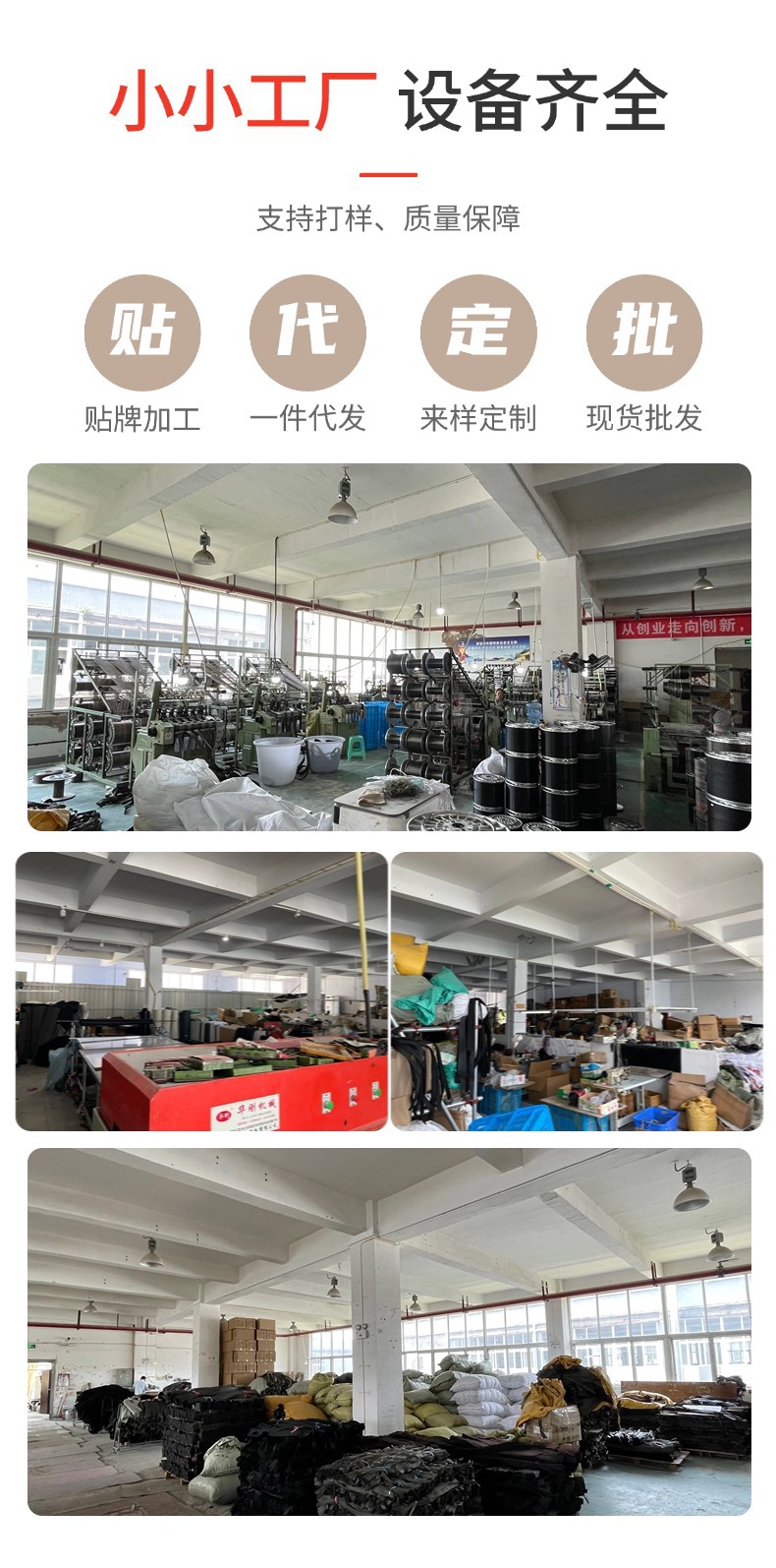 半成品,原料车间,PP织带,涤纶织带,PE版,扣具等