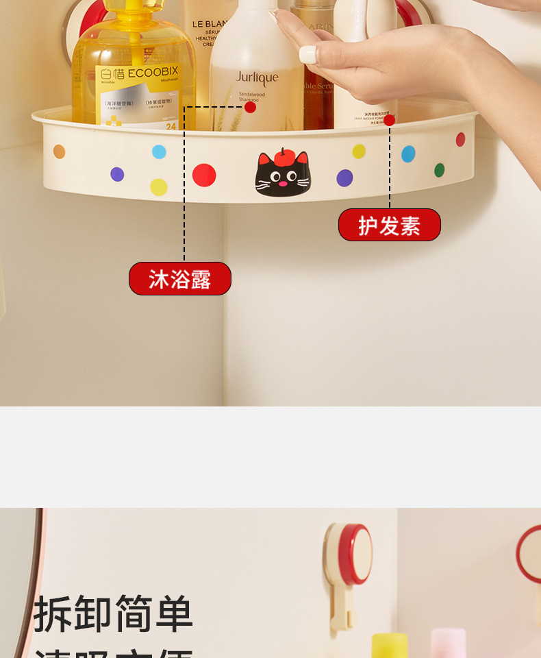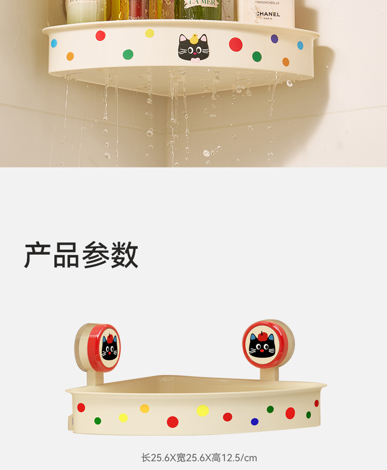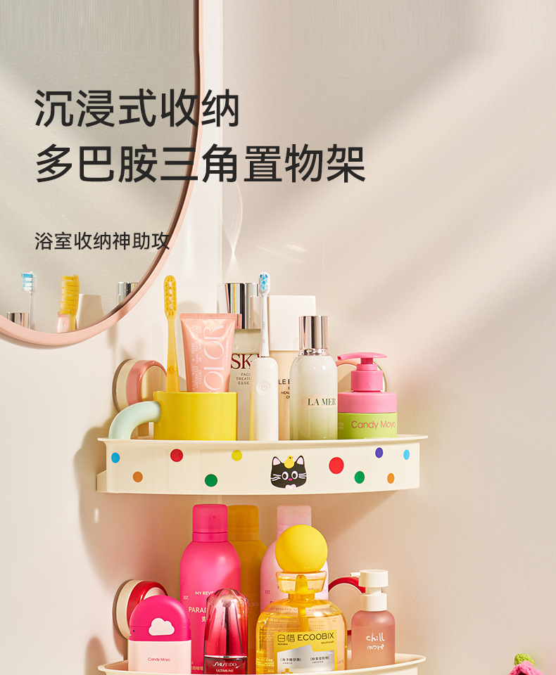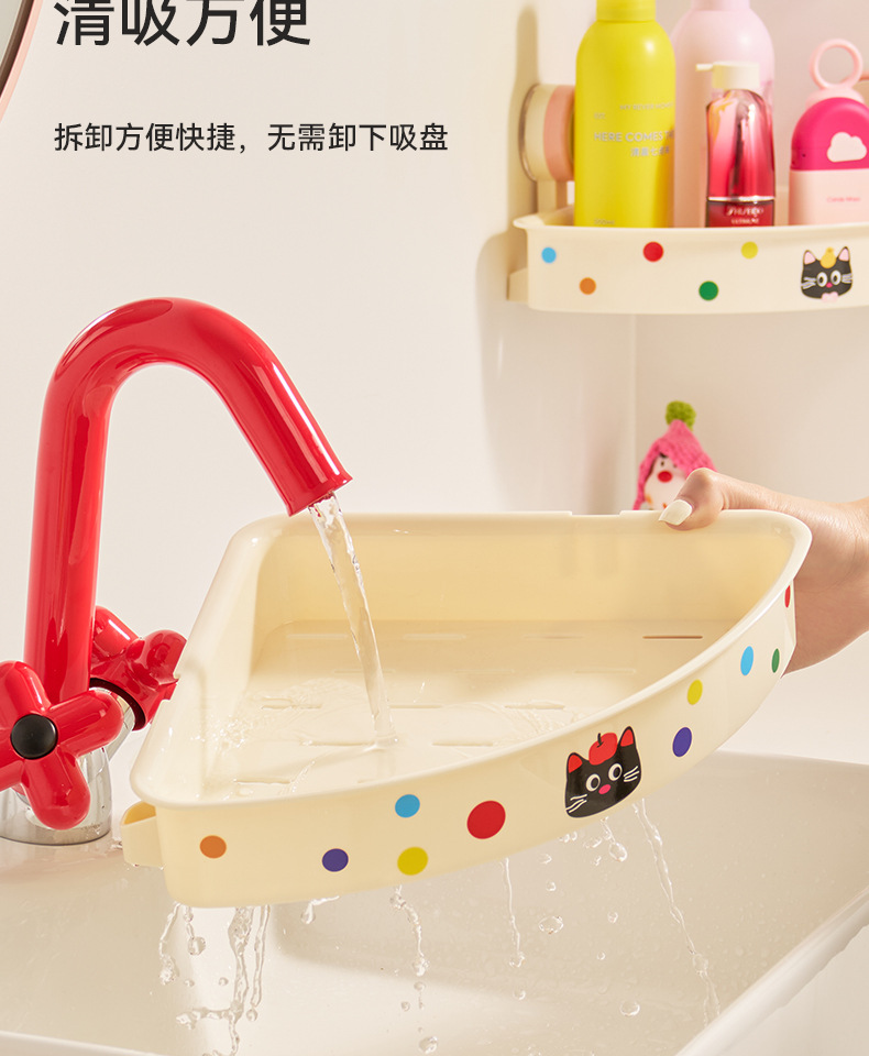 • 도파민 흡착컵 삼각수납선반 (우유백색과 붉은색 과일왕관고양이)