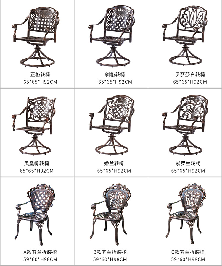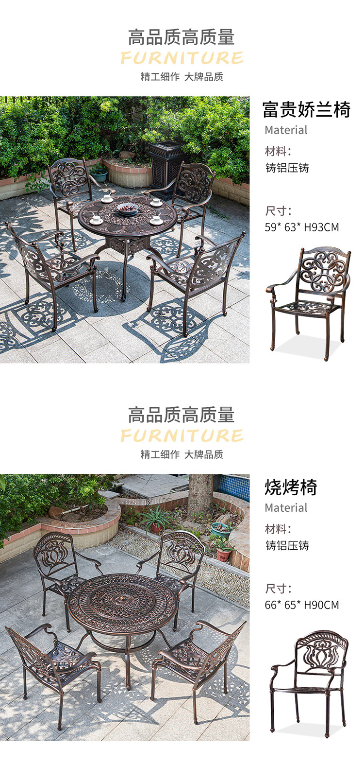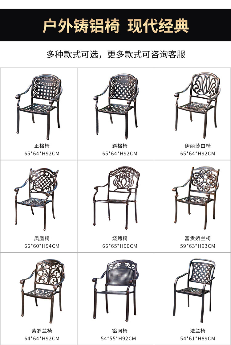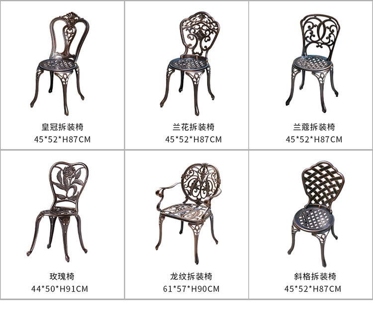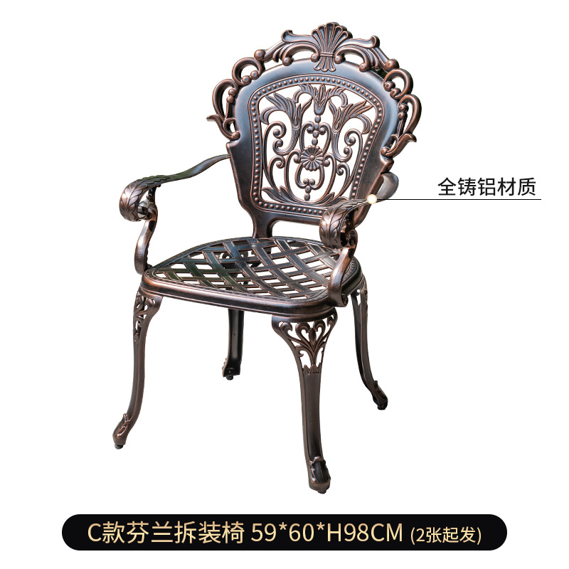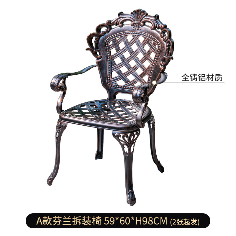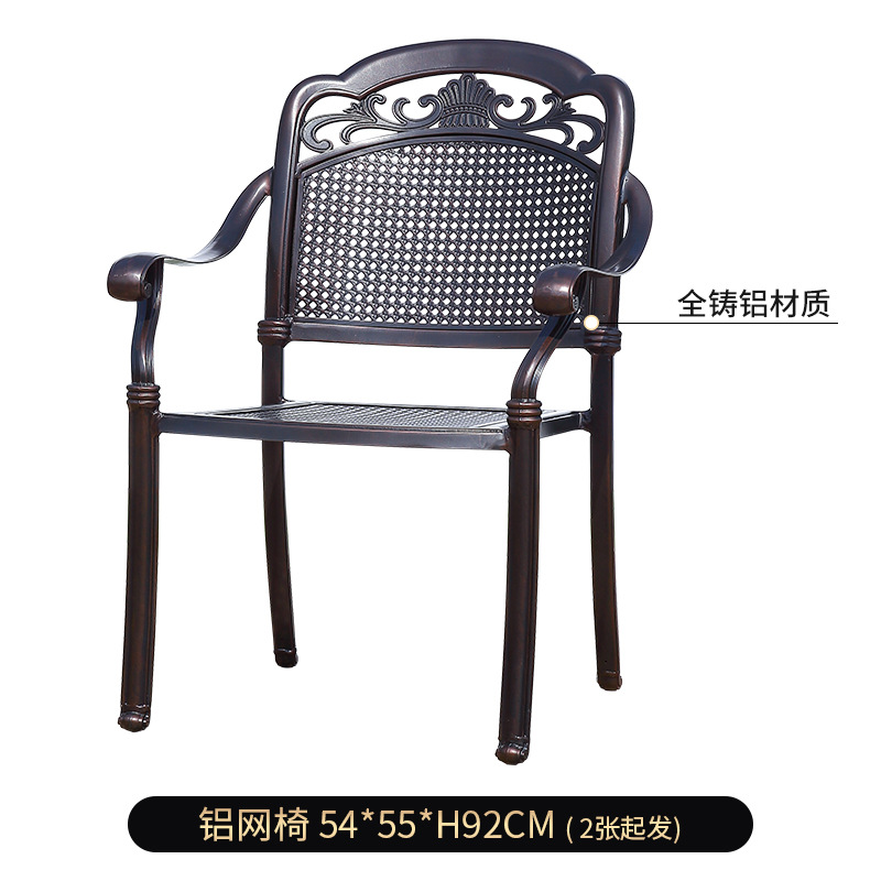 야외 주조 알루미늄 테이블과 의자 안뜰 발코니 밀크티 숍 해변 해변 카페 야외 방수 및 자외선 차단제 싱글 의자