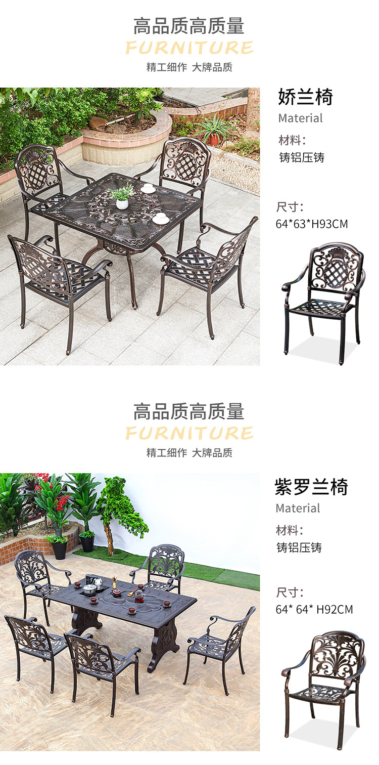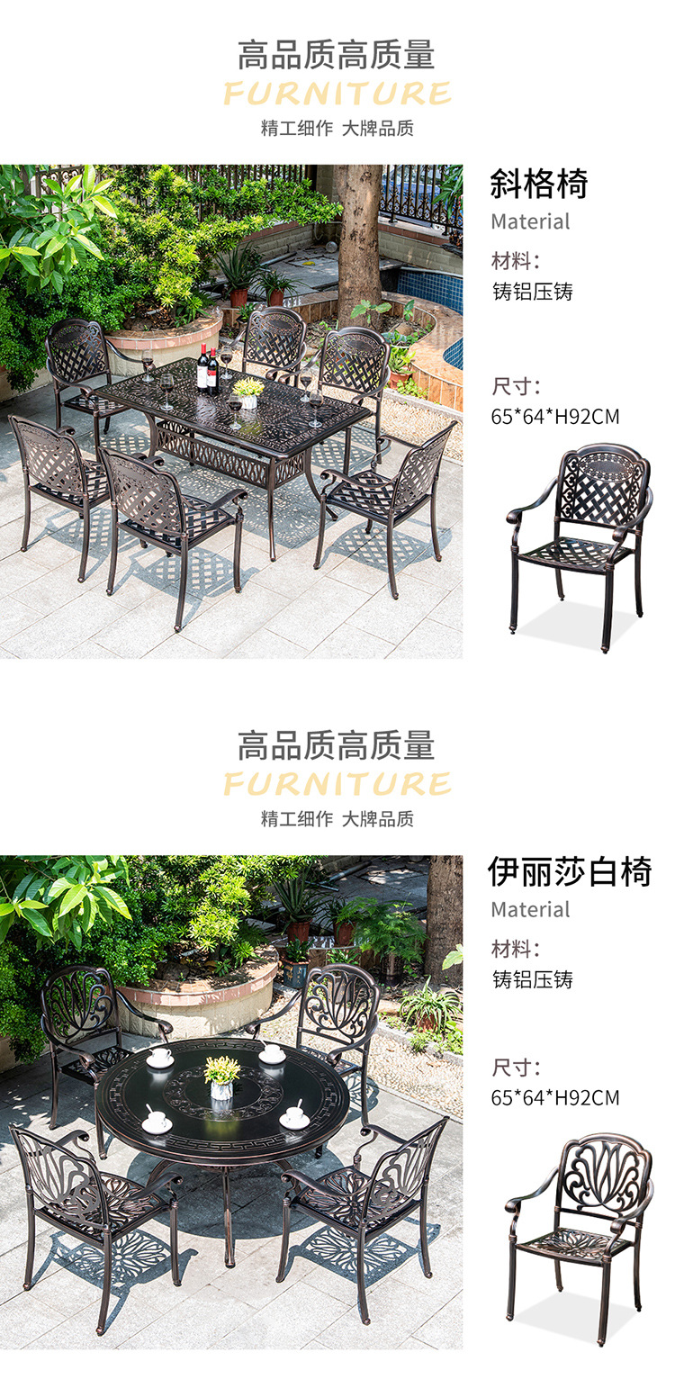 야외 주조 알루미늄 테이블과 의자 안뜰 발코니 밀크티 숍 해변 해변 카페 야외 방수 및 자외선 차단제 싱글 의자스토어 가기
