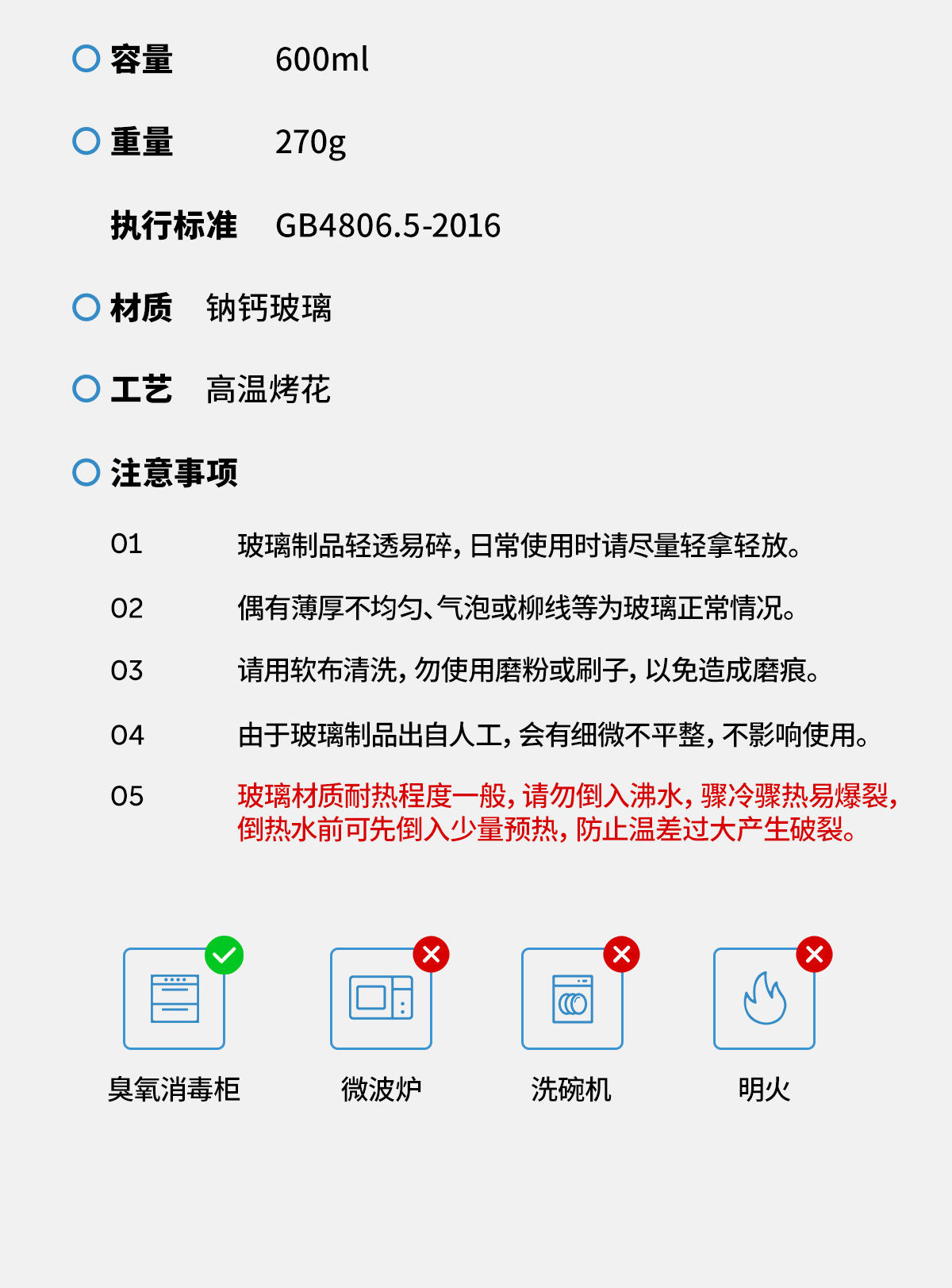 玻璃制品偶有薄厚不均或细微划痕气泡均为工艺制作中不可避免的现象,不属于售后范围,介意慎拍