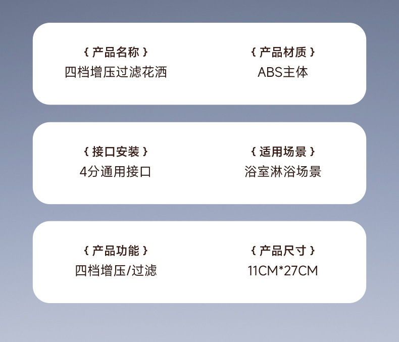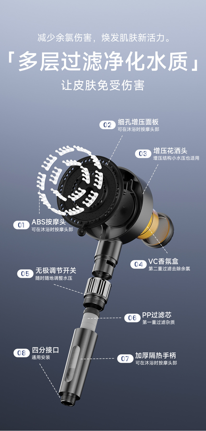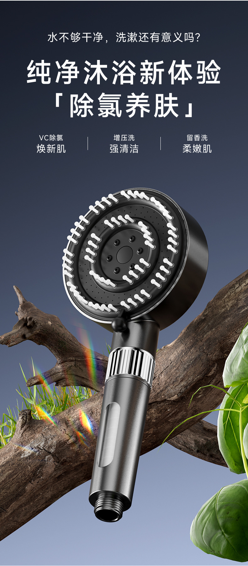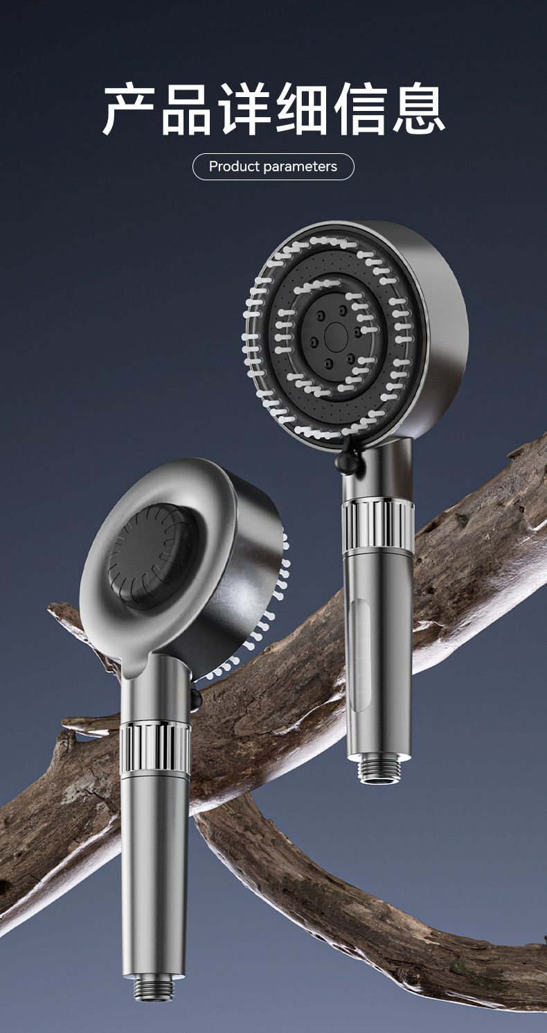 • 마사지 빗 4단 필터 샤워헤드 그레이