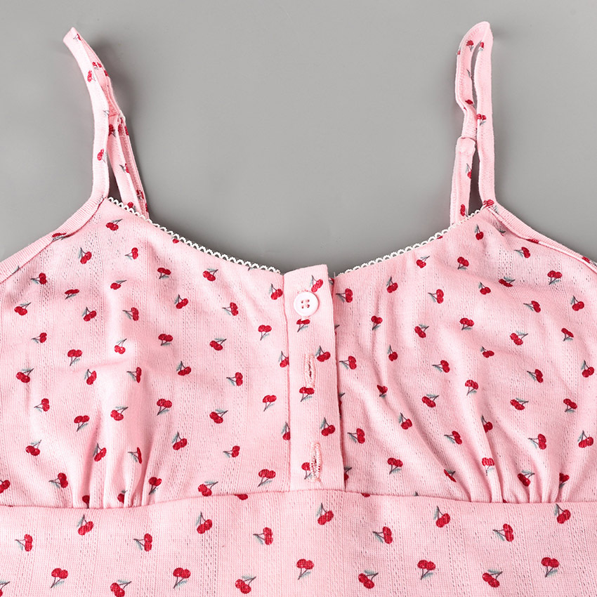 유럽과 미국의 국경 간 2025 여름 시원하고 통기성이 뛰어난 서스펜더 반바지 잠옷 세트 니트 자카드 프린트 여성 홈웨어스토어 가기