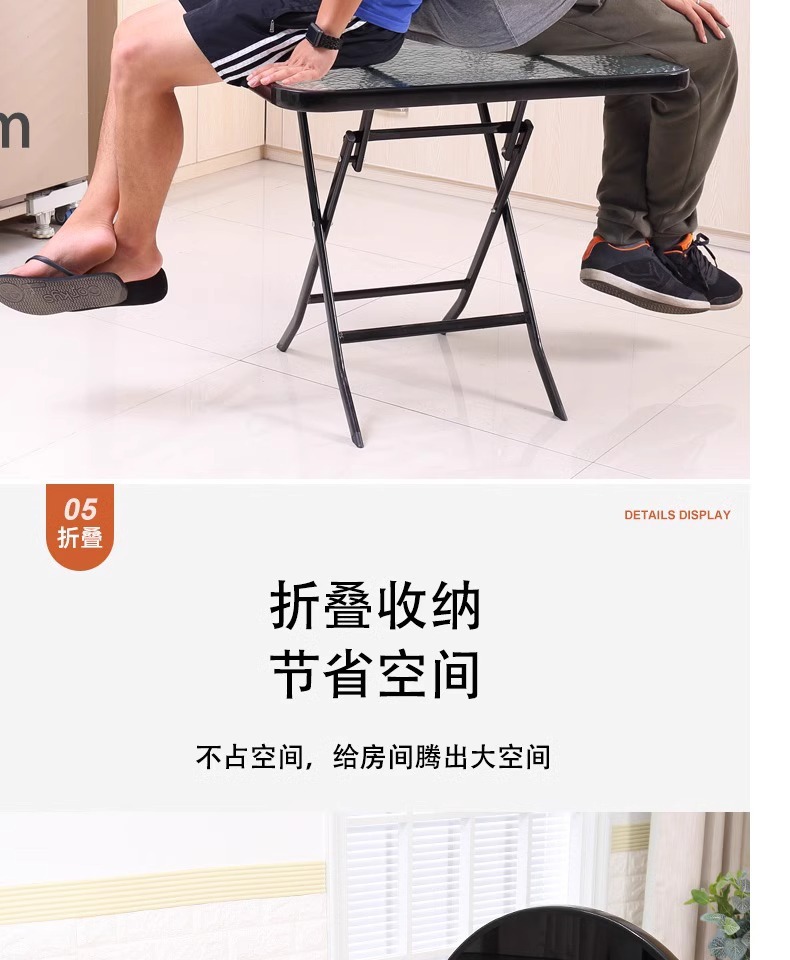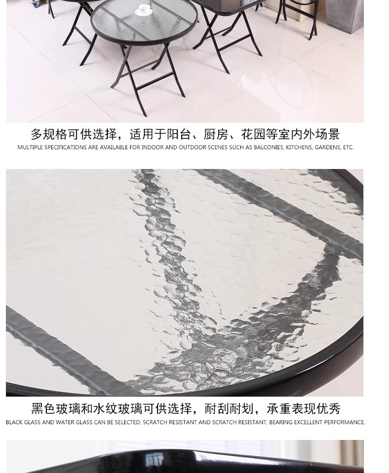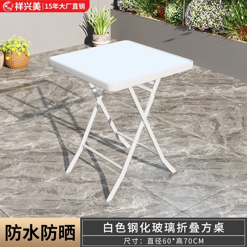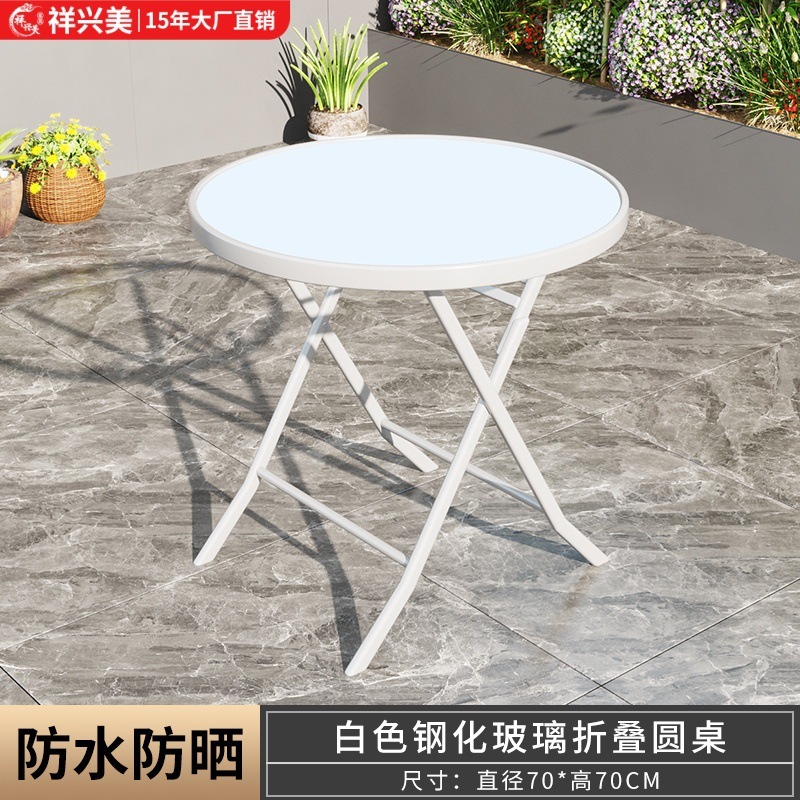 간단하고 휴대 가능한 강화 유리 테이블, 가정용 접이식 식탁, 발코니 테이블과 의자, 야외 레저 스톨 테이블스토어 가기