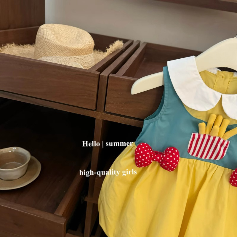 [통 싱위안] 오리지널! 코스 마돈나 가게 조수 여성 보물 귀여운 프렌치 프라이 인형 칼라 대학 꽃 거품 원피스스토어 가기