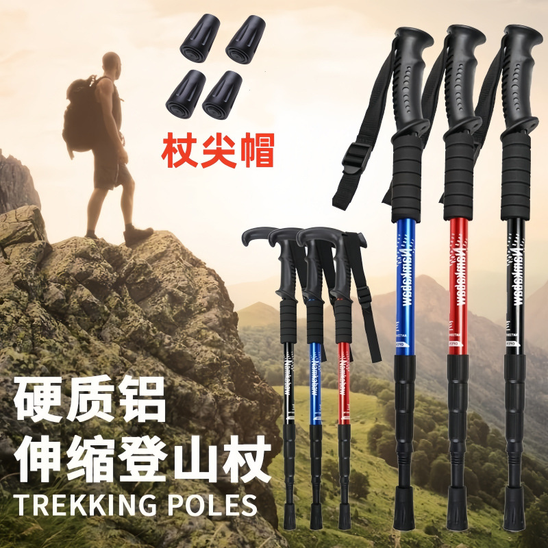 남성용 및 여성용 트레킹 스틱, 다기능 호신술 스틱, 노인 및 어린이를 위한 텔레스코픽 휴대용 지팡이, 하이킹 및 등산