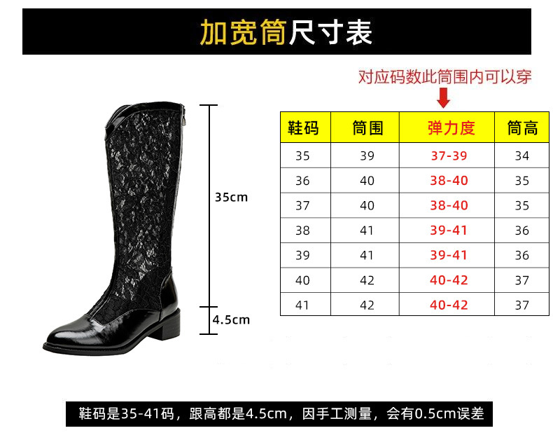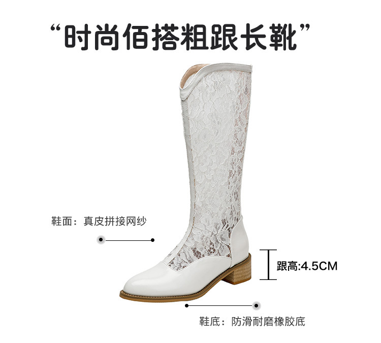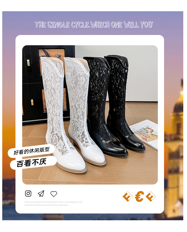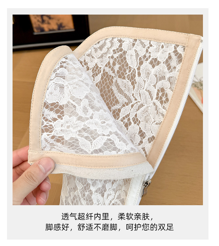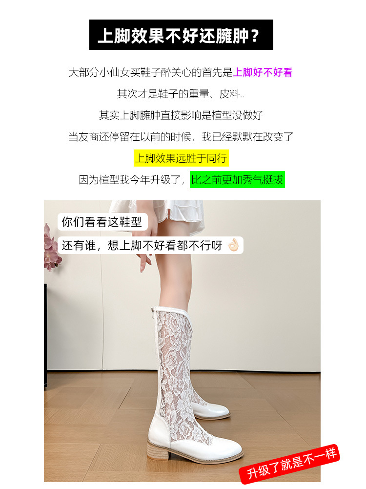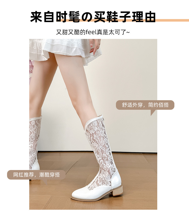 중공 레이스 하이 부츠 여성 2025 프랑스 뉴 스타일 내부 높이 증가 뾰족한 통기성 두꺼운 힐 패션 기사 부츠 여성스토어 가기