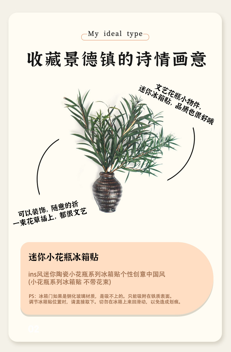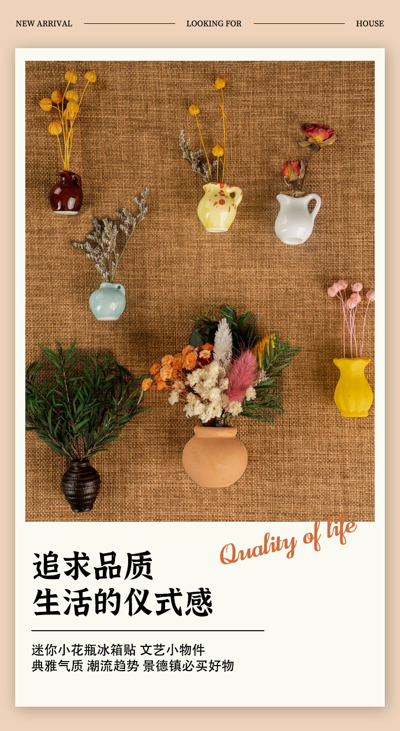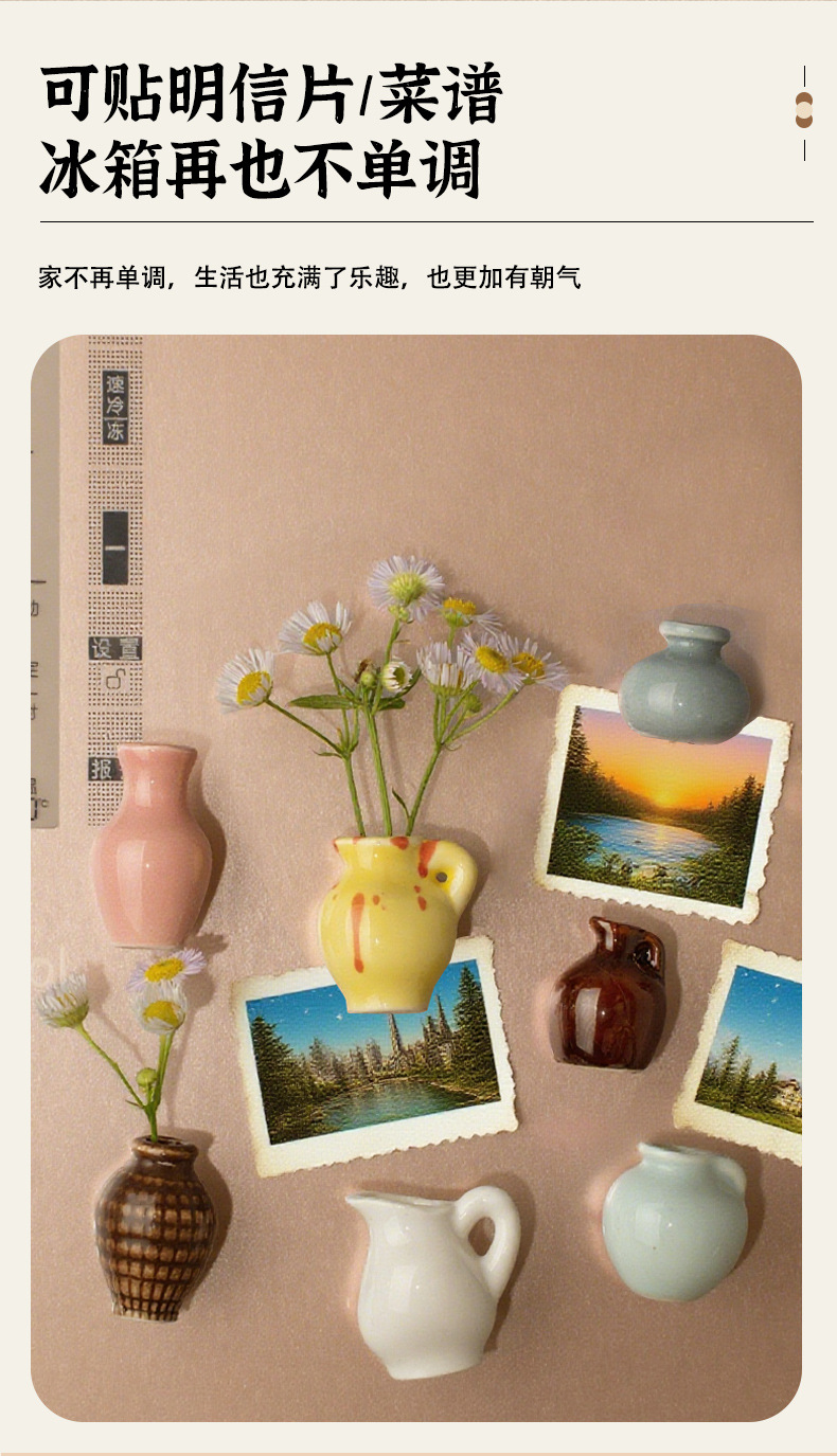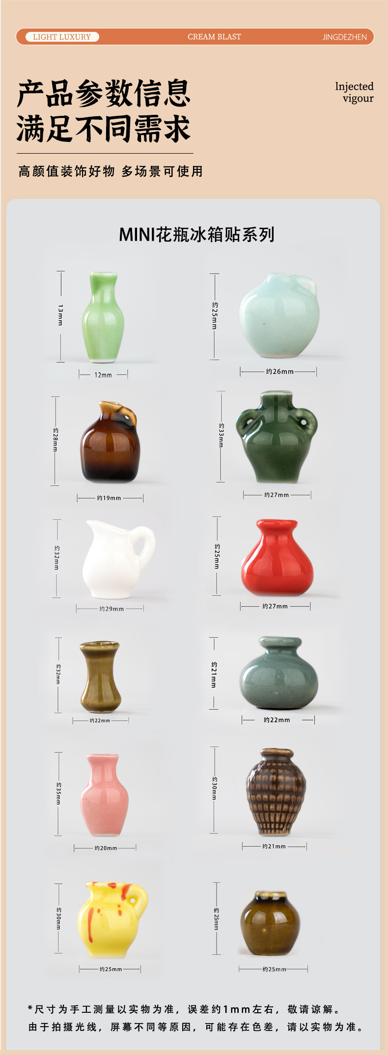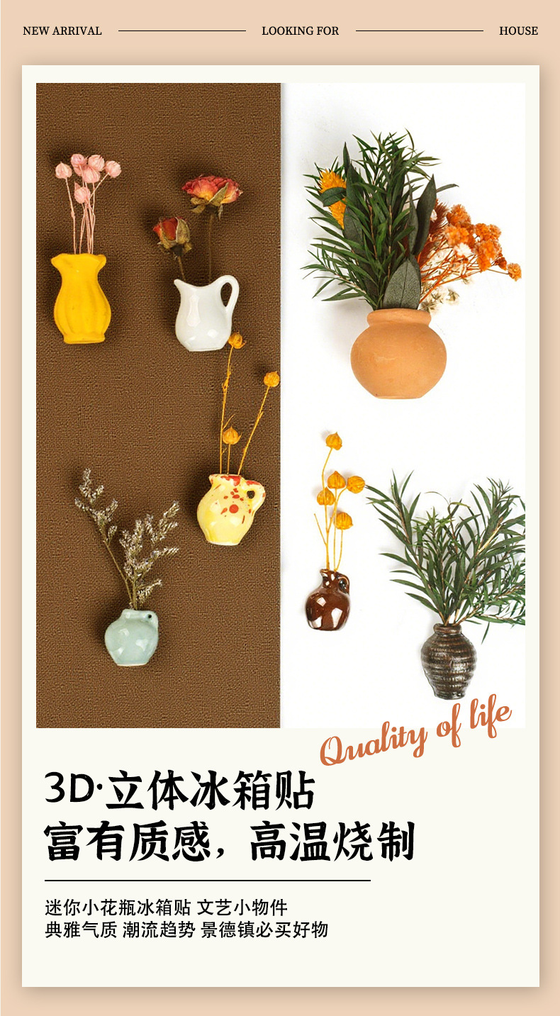 Jingdezhen 세라믹 미니 꽃병 냉장고 자석 자석 꽃꽂이 장식 항목 손가락 끝 DIY 냉장고 장식 장식품스토어 가기