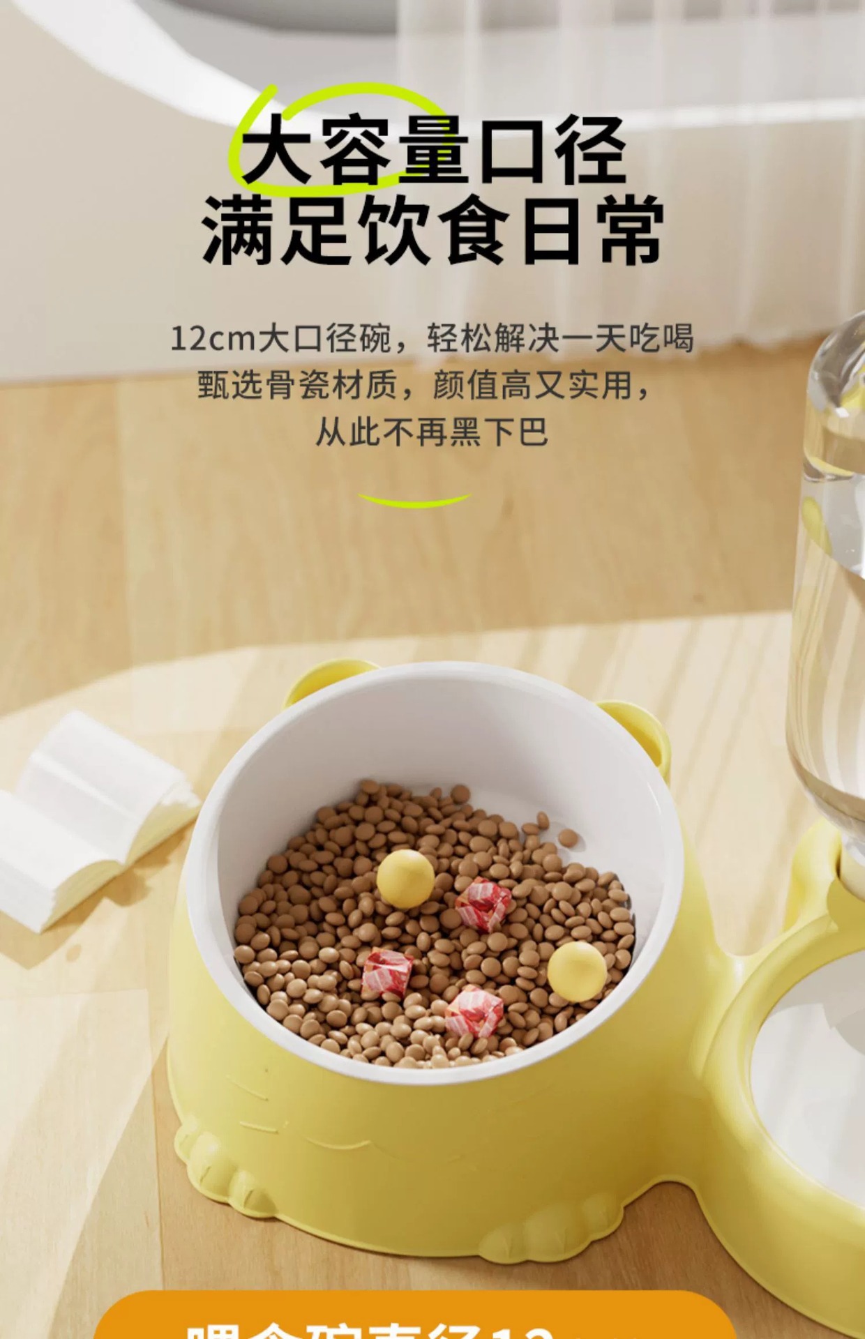 • 크리미한 노란색 세라믹 그릇 [검은 턱 없음 + 먹이주기 + 자동 물 저장]