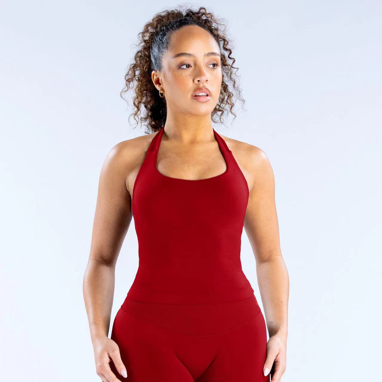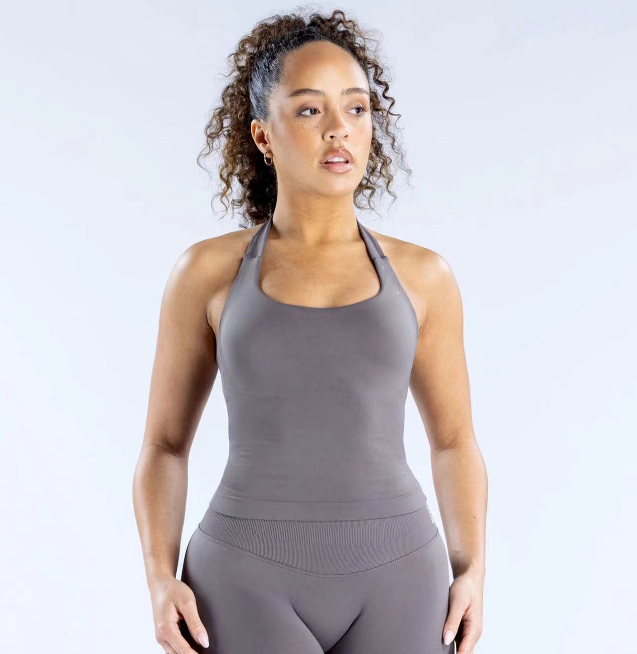 DFYNE 목에 걸려있는 스포츠 조끼 야외 달리기 체육관 스포츠 가슴 패드 요가 브래지어 긴 안티 러닝 라이트