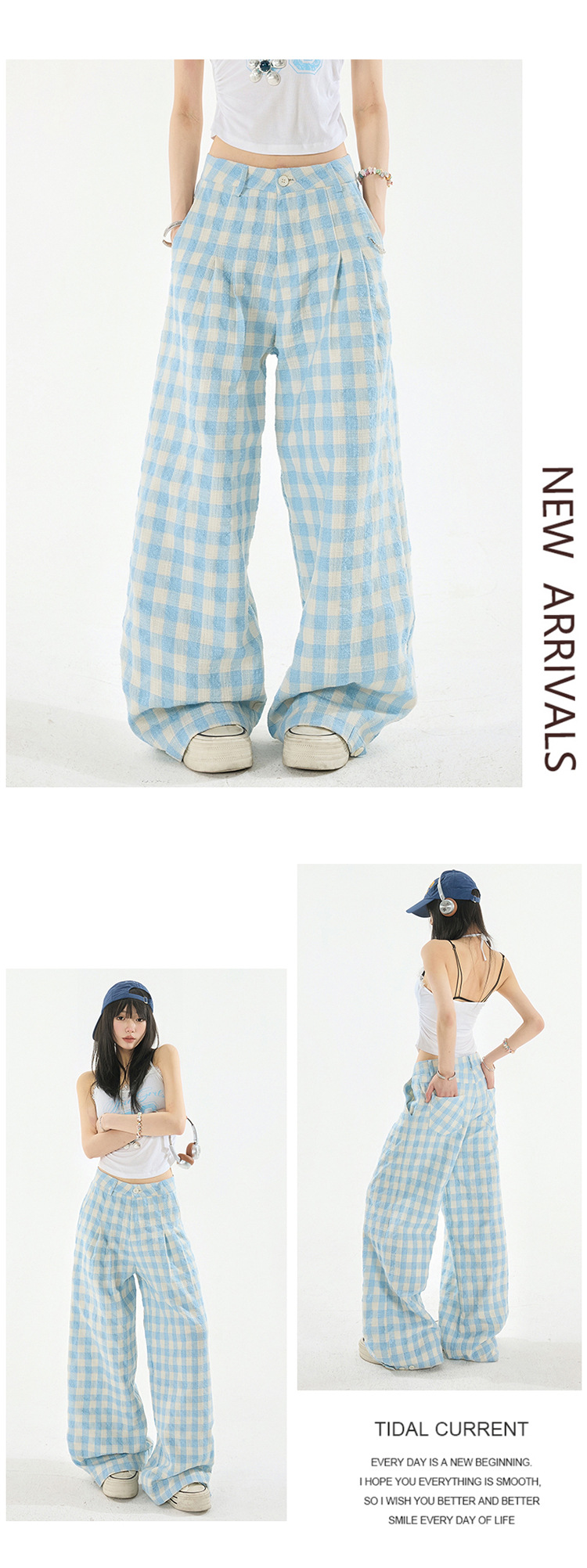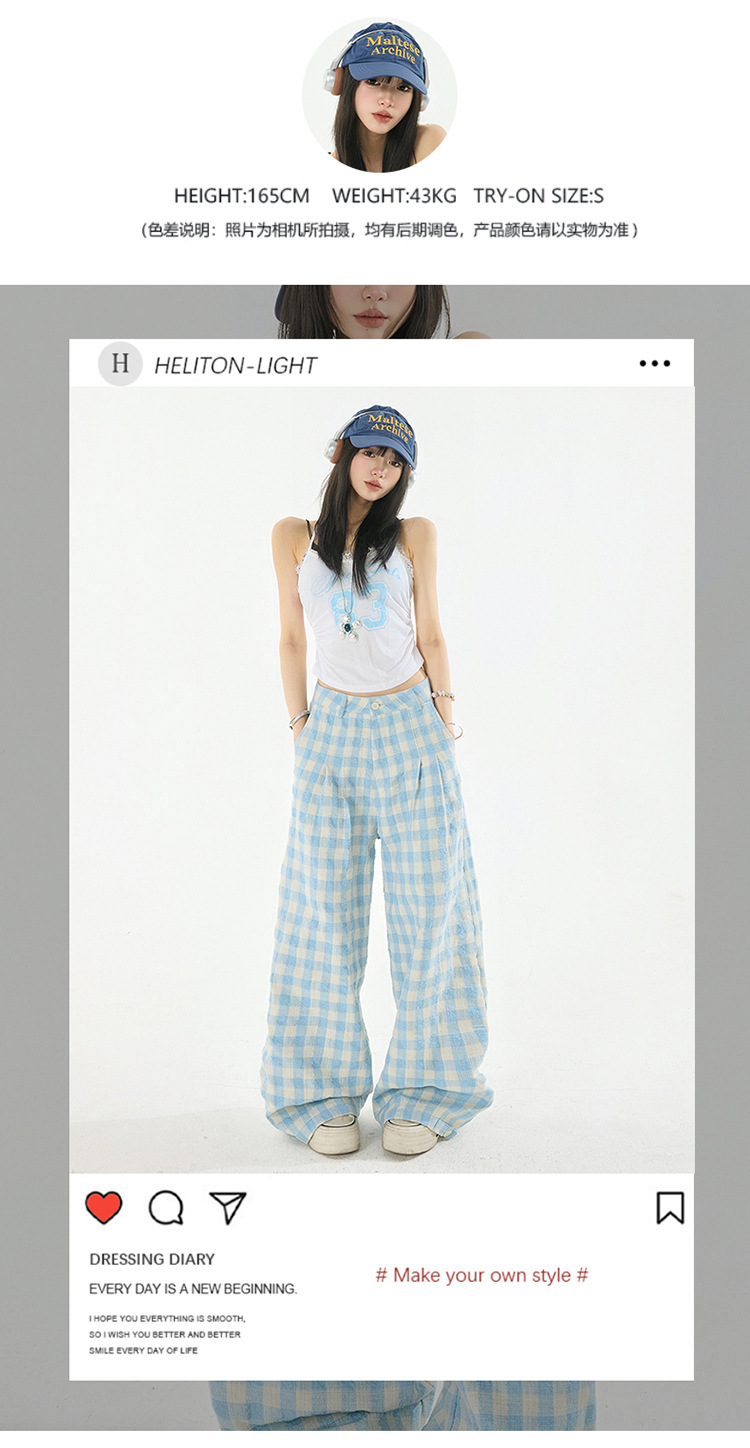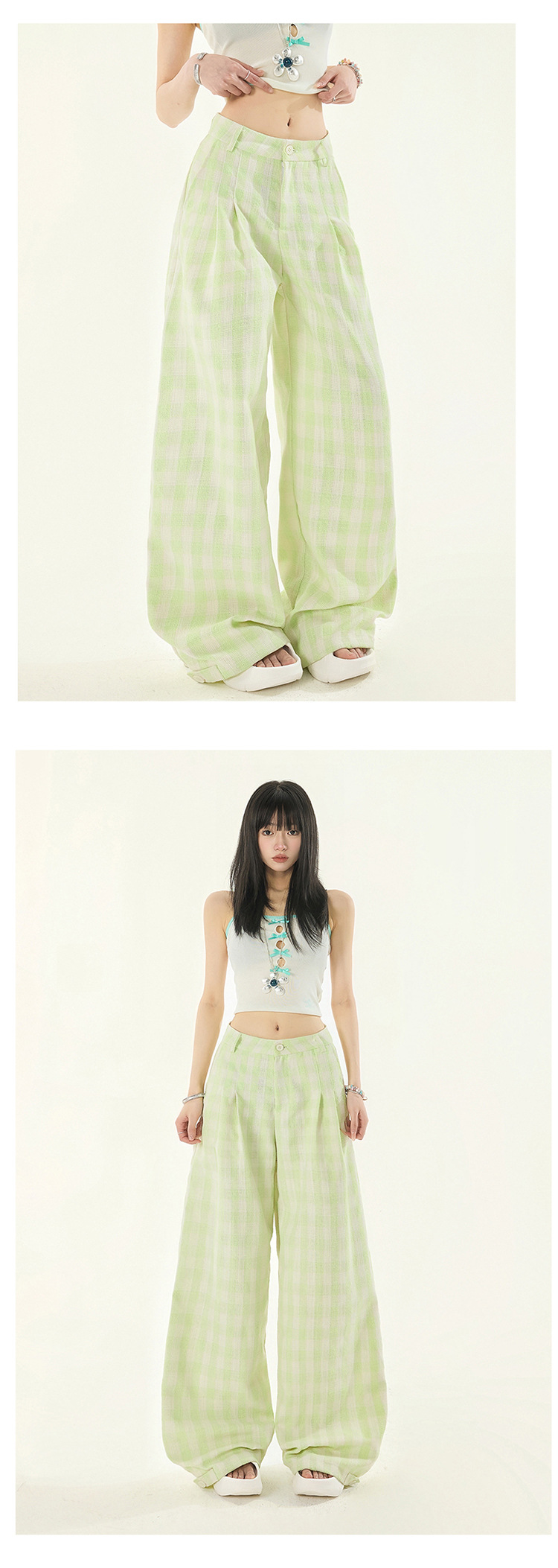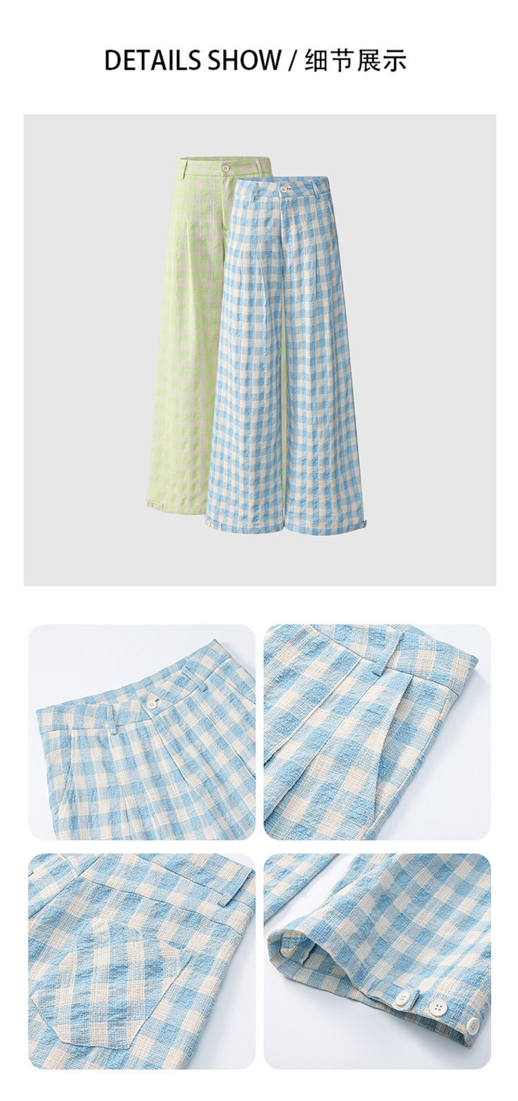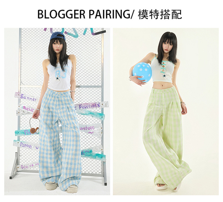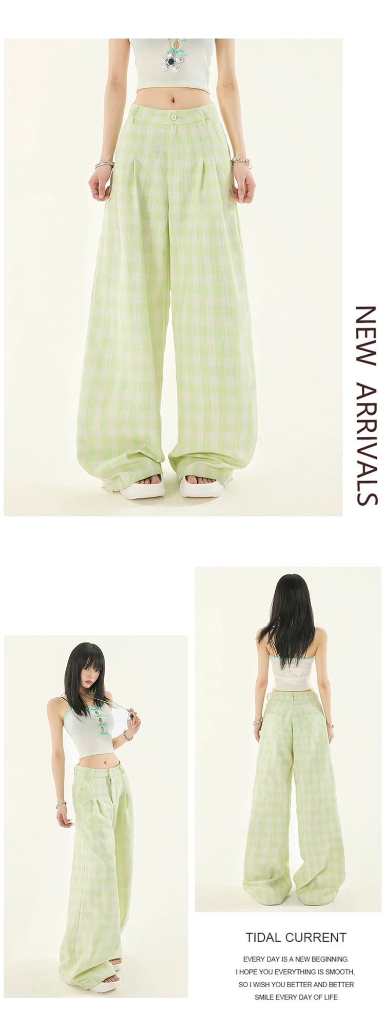 YD@격자 무늬 스트라이프 린넨 캐주얼 바지 여성 2025 신작 봄 여름 루즈 스트레이트 와이드 레그 팬츠스토어 가기