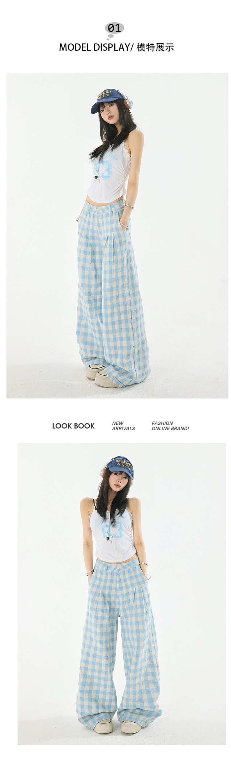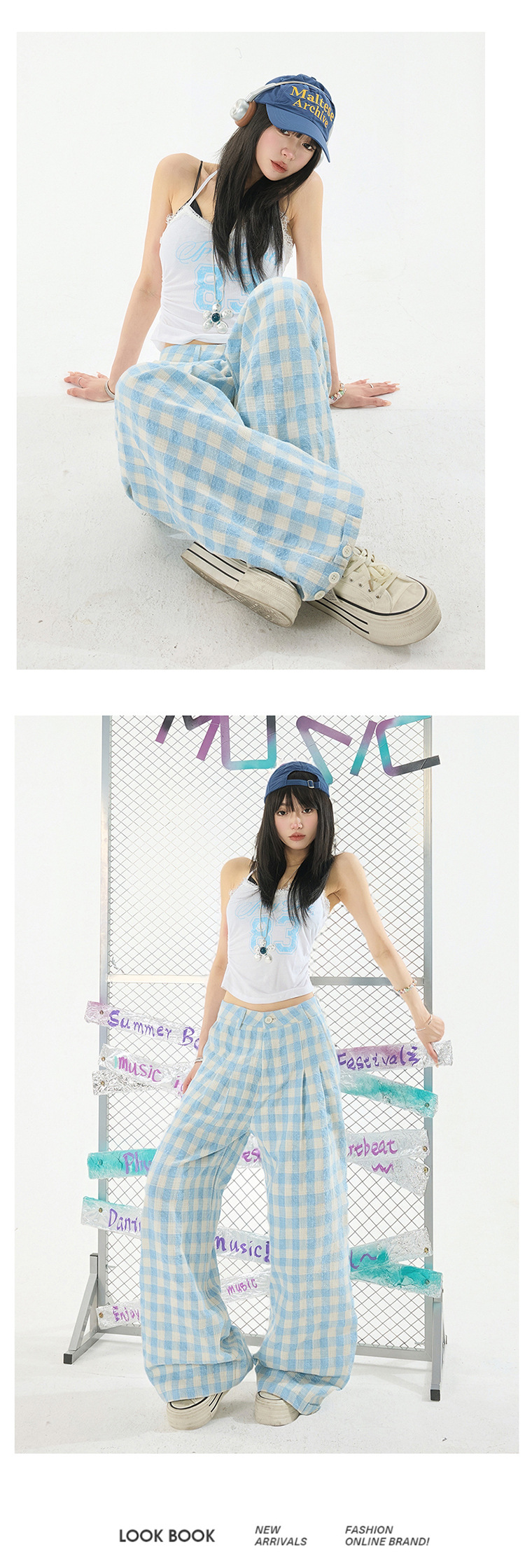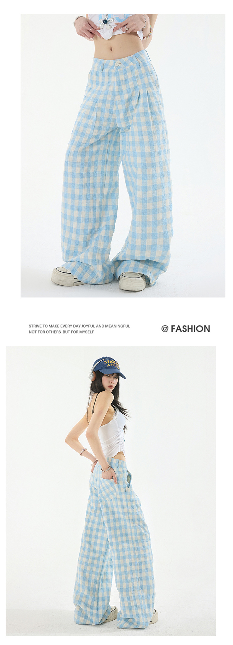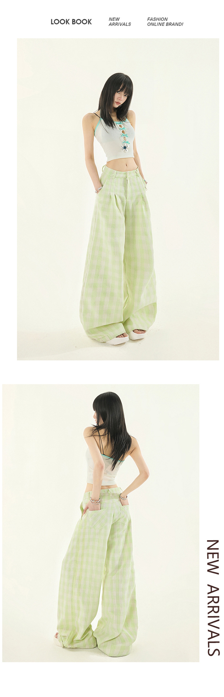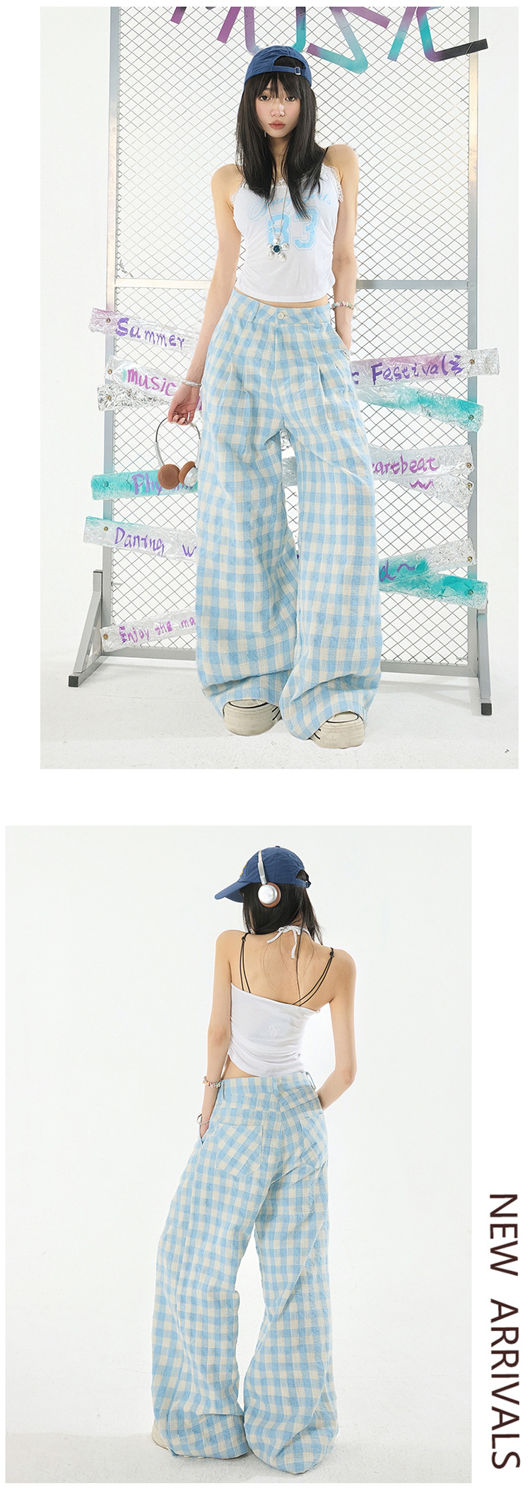 YD@격자 무늬 스트라이프 린넨 캐주얼 바지 여성 2025 신작 봄 여름 루즈 스트레이트 와이드 레그 팬츠스토어 가기