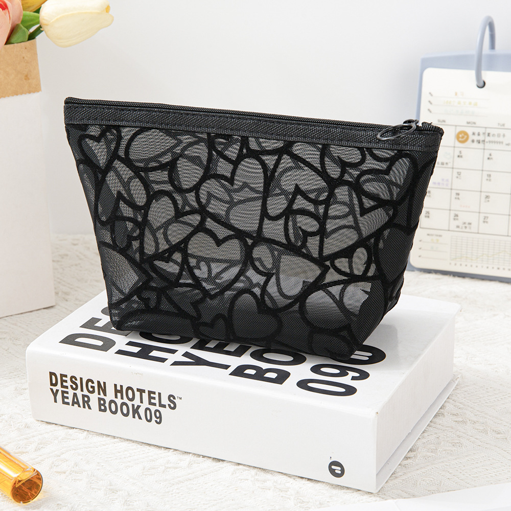 망사 핸드백 토트백 플로럴 수납백 휴대용 여행 화장품 가방 대용량 세면도구 가방 투명 디자인