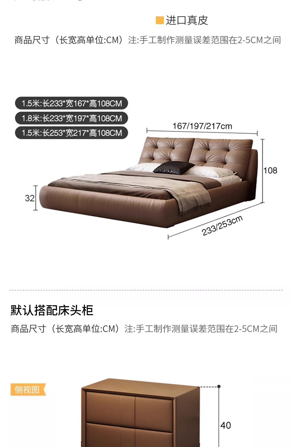 • 나파 가죽 침대 + 친환경 브라운 스프링 매트리스 + 협탁 * 1